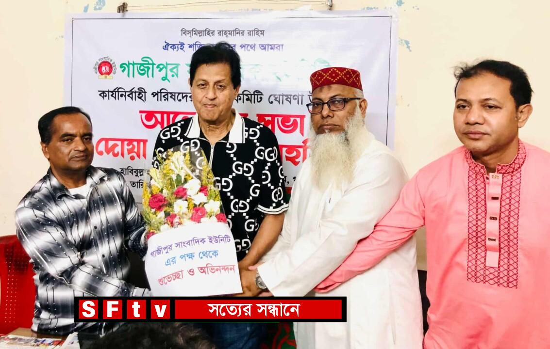 সুরুজ্জামান রাসেল : আনন্দমুখর পরিবেশে গাজীপুর সাংবাদিক ইউনিটির কার্যনির্বাহী পরিষদের কমিটি গঠন করা হয়েছে। বুধবার ৭ মে ২০২৫ বাদ মাগরিব হাবিবুল্লাহ স্মরণি রোড, ইকবাল কুটির অবস্থিত ইউনিটির কার্যালয়ে এই অনুষ্ঠানের আয়োজন করা হয়। উক্ত কমিটির সভাপতি এম এ ফিরোজ লাভলুর সভাপতিত্বে, সাধারণ সম্পাদক মোঃ হাইউল উদ্দিন খান এর পরিচালনায় এ সময় প্রধান অতিথি হিসেবে দিকনির্দেশনামূলক বক্তব্য রাখেন, গাজীপুর সদর উপজেলার সাবেক চেয়ারম্যান, গাজীপুর মহানগর বিএনপির সাবেক সহ-সভাপতি আফজাল হোসেন কায়সার। আমন্ত্রিত অতিথি হিসেবে বক্তব্য রাখেন, আনন্দ টিভির গাজীপুর জেলা প্রতিনিধি, দৈনিক যুগান্তর এর কাপাসিয়া প্রতিনিধি মোঃ খোরশেদ আলম, এ সময় স্বাগত বক্তব্য রাখেন, দৈনিক কণ্ঠবাণী পত্রিকার সম্পাদক ও প্রকাশক এম জে আলম। উক্ত কমিটির অন্যান্য সদস্যরা হলেন, ১।সহ-সভাপতি, মোঃ আবুসালেক ভূইয়া, ২। সহ-সভাপতি, জাহিদুর রহমান বকুল,৩।সহ-সভাপতি- ডাঃ মোঃ বাবুল খান, ৪।যুগ্ম-সাধারণ সম্পাদক, মুহাম্মদ আতিকুর রহমান ৫।সাংগঠনিক সম্পাদক-মোঃ নাসির উদ্দিন, ৬।অর্থ সম্পাদক-মোঃ শরীফ হোসেন শামীম,, ৭। দপ্তর সম্পাদক -মোঃ সারওয়ার আলম,৮। সাহিত্য ও সাংস্কৃতিক সম্পাদক - মোঃ জিল্লুর রহমান, ৯। প্রচার ও প্রকাশনা সম্পাদক - মোঃ কাজল মিয়া, সদস্য -১। মোঃ মোবারক হোসেন রনি, সদস্য -২। মোঃ আব্দুল বারি, সদস্য -৩। মোঃ আব্দুল আলী।উক্ত কার্যনির্বাহী কমিটি,, দুই বছরের জন্য বহাল থাকিবে।আলোচনা সভার পূর্বে, গাজীপুর সাংবাদিক ইউনিটি'র পক্ষ থেকে ফুলের তোড়া দিয়ে স্বাগত জানানো হয়,সাবেক গাজীপুর সদর উপজেলা চেয়ারম্যান,অনুষ্ঠানের প্রধান অতিথি আফজাল হোসেন কায়সার'কে। আলোচনা ও দোয়া মাহফিল শেষে সবার মাঝে তবারক বিতরণ করা হয়।