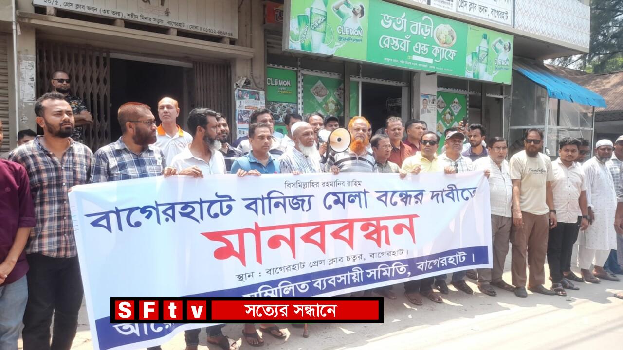 বাগেরহাটে বাণিজ্য মেলা বন্ধের দাবিতে মানববন্ধন