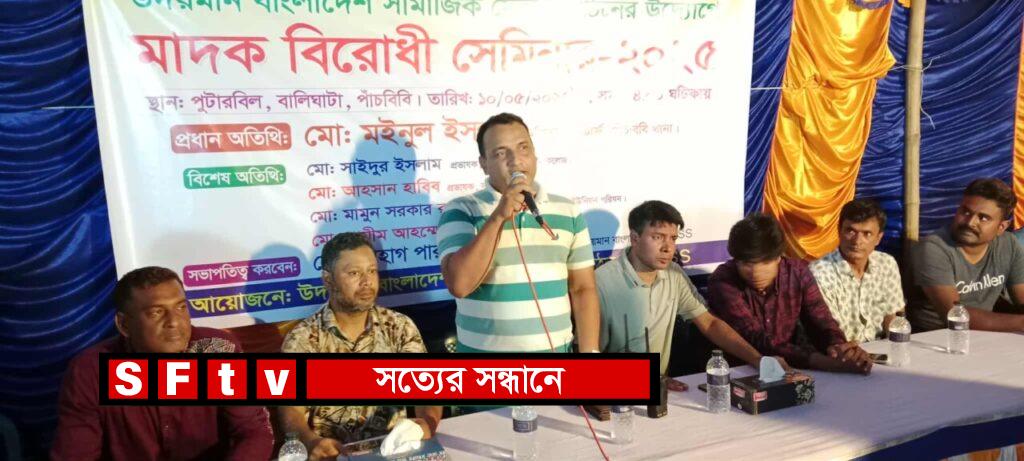তিনি বলেন, “মাদক শুধু একজন ব্যক্তিকে নয়, পুরো পরিবার ও সমাজকে ধ্বংস করে। আমাদের সবাইকে একযোগে মাদকের বিরুদ্ধে রুখে দাঁড়াতে হবে। বিশেষ অতিথি হিসেবে উপস্থিত ছিলেন:মোঃ মইনুল ইসলাম অফিসার ইনচার্জ পাঁচবিবি থানা মোঃ সাইদুর ইসলাম — প্রভাষক, ডুগডুগিহাট বিএম কলেজ ,মোঃ আহসান হাবিব — অধ্যাপক , সড়াইল কলেজ, মোঃ মামুন সরকার রাশেদুল — সদস্য, ৪নং বালিঘাটা ইউনিয়ন পরিষদ, মোঃ শামীম আহমেদ — বিশিষ্ট ব্যবসায়ী,মোঃ নয়ন প্রধান যুগ্ন আহবায়ক ছাত্রদল পৌর শাখা সবার বক্তব্যেই মাদককে “জাতির ভবিষ্যতের ঘাতক” হিসেবে অভিহিত করে তা নির্মূলে সম্মিলিত প্রতিরোধ গড়ে তোলার আহ্বান জানানো হয়। সভাপতিত্ব করেন: মোঃ সোহাগ পারভেজ, প্রতিষ্ঠাতা ও সভাপতি, উদয়মান বাংলাদেশ (YBSSS)। তিনি বলেন, “যুব সমাজকে রক্ষা করতে হলে শুধু আইন প্রয়োগ নয়, প্রয়োজন পরিবার, সমাজ ও শিক্ষা প্রতিষ্ঠান সমূহের সম্মিলিত সচেতনতা ও উদ্যোগ। সেমিনারে শতাধিক স্থানীয় নাগরিক, ছাত্র-যুবক ও সমাজসেবী উপস্থিত ছিলেন। আয়োজক সংগঠন YBSSS ভবিষ্যতেও সমাজকল্যাণমূলক এ ধরনের উদ্যোগ চালিয়ে যাবে বলে আশাবাদ ব্যক্ত করে।