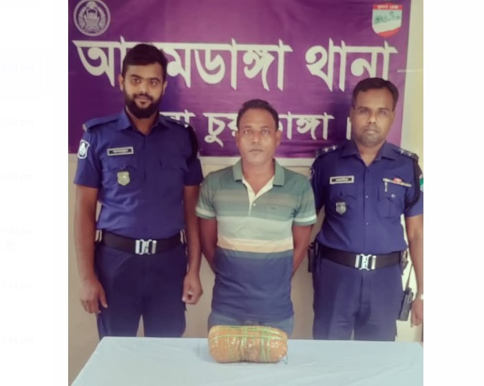 আলমডাঙ্গা থানা পুলিশের অভিযানে এক কেজি গাঁজাসহ একজন মাদক ব্যবসায়ীকে গ্রেফতার করা হয়েছে। থানার অফিসার ইনচার্জ মুহাঃ মাসুদুর রহমান পিপিএম-এর নেতৃত্বে এসআই (নিঃ) মোঃ ওবায়দুল্লাহ আল মামুন, হাপানিয়া পুলিশ ক্যাম্পের সঙ্গীয় ফোর্সসহ মাদকবিরোধী অভিযান পরিচালনা করেন। গোপন সংবাদের ভিত্তিতে ১১ মে সকাল ৯টা ১৫ মিনিটে হাপনিয়া উত্তরপাড়া গ্রামের মোঃ আরিফ (৪৫) এর মুদি দোকানের সামনে পাঁকা রাস্তা থেকে মোঃ শনিরুল ইসলাম (৩৮), পিতা– মোঃ হামেদুল হক, মাতা– রঞ্জনা খাতুন, সাং– জামালপুর ত্রিমোহনী পাড়া, থানা– দৌলতপুর, জেলা– কুষ্টিয়াকে এক কেজি গাঁজাসহ গ্রেফতার করা হয়। আসামির বিরুদ্ধে আলমডাঙ্গা থানায় মামলা নম্বর ১৬, তারিখ ১১/০৫/২০২৫, ধারা ৩৬(১) সারণির ১৯(ক), মাদকদ্রব্য নিয়ন্ত্রণ আইন ২০১৮ অনুযায়ী মামলা রুজু করা হয়েছে।