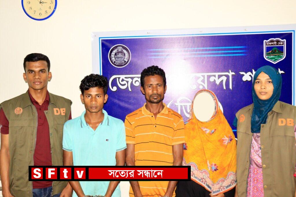 মাহিদুল ইসলাম ফরহাদ : গোমস্তাপুর উপজেলার চৌডালা ইউনিয়নের হরিনগর(কালিতলা) গ্রামে মতিন তেলি নাম এক ব্যক্তিকে হত্যার ঘটনার তিন আসামিকে গ্রেফতার করেছে পুলিশ। এ ঘটনায় গ্রেফতারকৃত আসামিরা হলেন মোঃ শুকুরুদ্দিন (৪২), তার স্ত্রী মোসাঃ পিয়ারা বেগম (৩৫) ও মোঃ পিয়ারুল ইসলাম (২৩)। পুলিশ জানিয়েছে তারা সকল স্বীকারোক্তিমূলক জবানবন্দী দিয়েছে। গত ২ মার্চ রাত আনুমানিক ৮টায় মতিন তেলি বাড়ির পাশের সাহেবগ্রাম জামে মসজিদে নামাজ পড়তে যান। নামাজ শেষে তিনি বাড়ি ফিরেননি। পরদিন ৩ মার্চ রাত সাড়ে ১২টার দিকে তার স্ত্রী ফেনী ও পরিবারের সদস্যরা লোকমুখে জানতে পারেন, শুকুরুদ্দিনের বাড়ির শয়নকক্ষে মতিনের রক্তাক্ত লাশ পড়ে আছে। লাশ পরীক্ষা করে দেখা যায়, মতিনের ডান গাল, হাতের বাহু, উরু, থুতনি, কপাল ও বাম পায়ে গভীর কাটা দাগ রয়েছে। পরিবারের পক্ষ থেকে গোমস্তাপুর থানায় শুকুরুদ্দিন, পিয়ারা বেগম, পিয়ারুল ইসলাম ও অজ্ঞাতনামা ৫-৬ জনকে আসামি করে হত্যার মামলা (মামলা নং-০১/৩৮, ধারা-৩০২/৩৪) দায়ের করা হয়। চাঁপাইনবাবগঞ্জ জেলা গোয়েন্দা শাখার তত্ত্বাবধানে একটি টিম অভিযান চালিয়ে ৯ মে মানিকগঞ্জ সদর থানা এলাকা থেকে তিন আসামিকে গ্রেফতার করে। জিজ্ঞাসাবাদে আসামিরা জানায়, মতিন তেলি তেল বিক্রির পাশাপাশি কবিরাজি করতেন। পিয়ারা বেগমের পেটের ব্যথার চিকিৎসা করাতে গিয়ে তার সঙ্গে মতিনের অবৈধ সম্পর্ক গড়ে ওঠে। পরে পিয়ারা এই সম্পর্ক থেকে বের হতে চাইলে মতিন জোরজবরদস্তি চালাতেন। ঘটনার দিন (২ মার্চ) পিয়ারা আবার অসুস্থ হলে মতিন তেলি চিকিৎসার জন্য তাদের বাড়িতে আসেন। তিনি শুকুরুদ্দিনকে মিষ্টি কিনতে পাঠান এবং পিয়ারুল বাড়ি না থাকায় পিয়ারার সঙ্গে জোরপূর্বক শারীরিক সম্পর্ক করতে গেলে পিয়ারা তাকে ধারালো অস্ত্র দিয়ে আঘাত করেন। পরে বাড়ি ফিরে শুকুরুদ্দিনও তাকে কুপিয়ে হত্যা করে। তারা ছেলেকে ফোন করে ঘটনাস্থল থেকে পালিয়ে যায়। গ্রেফতারকৃত আসামিরা আদালতে ফৌজদারি কার্যবিধির ১৬৪ ধারায় স্বীকারোক্তিমূলক জবানবন্দী দিয়েছে। পুলিশের পক্ষ থেকে জানানো হয়েছে মামলার তদন্ত ও অন্যান্য আসামিদের গ্রেফতারে তারা তৎপর রয়েছেন