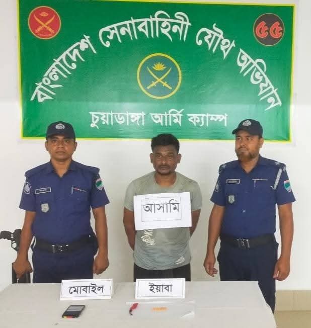 মোঃ মুনাইম হোসেন, (জীবননগর) প্রতিনিধি; চুয়াডাঙ্গা জীবননগরের সেনাবাহিনী ও পুলিশ যৌথ অভিযান চালিয়ে ৩৫ পিস ইয়াবা ইয়াবা ট্যাবলেটসহ মোঃ মিলন (৪৪) নামের একজনকে আটক করেছে৷ মঙ্গলবার (১৩)মে ২০২৫) রাত সাড়ে ১১ টার দিকে রাজনগর গ্রাম থেকে তাকে আটক করা হয়। আটককৃত মিলন রাজনগর গ্রামের মৃত মজের আলীর। মিন্টুর ছেলে। জানাযায় গোয়েন্দা তথ্যের ভিত্তিতে বাংলাদেশ সেনাবাহিনীর ক্যাপ্টেন সৌমিক আহমেদ নয়নের নেতৃত্বে সেনাবাহিনী ও পুলিশের সহমন্বয়ের গঠিত একটি টিম মঙ্গলবার রাতে জীবননগর উপজেলার রাজনগর গ্রামে মিলনের বাড়িতে মাদকবিরোধী অভিযান চালিয়ে তাকে আটক করে। এ-সময় উদ্ধার করা হয় ৩৫ পিস ইয়াবা ট্যাবলেট,১টি অ্যান্ড্রয়েড মোবাইল ফোন ও ১টি পিতলের পাইপ প্রাথমিক জিজ্ঞাসাবাদ শেষে জব্দকৃত আলামতসহ আটক। ব্যক্তিকে রাতেই জীবননগর থানায় হস্তান্তর করা হয়। জীবননগর থানার ওসি মামুন বিশ্বাস জানান, আটক মিলনের বিরুদ্ধে জীবননগর থানায় মামলা দায়েরপূর্বক বুধবার সকালে তাকে চুয়াডাঙ্গার বিজ্ঞ আদালতে প্রেরণ করা হয়েছে।
