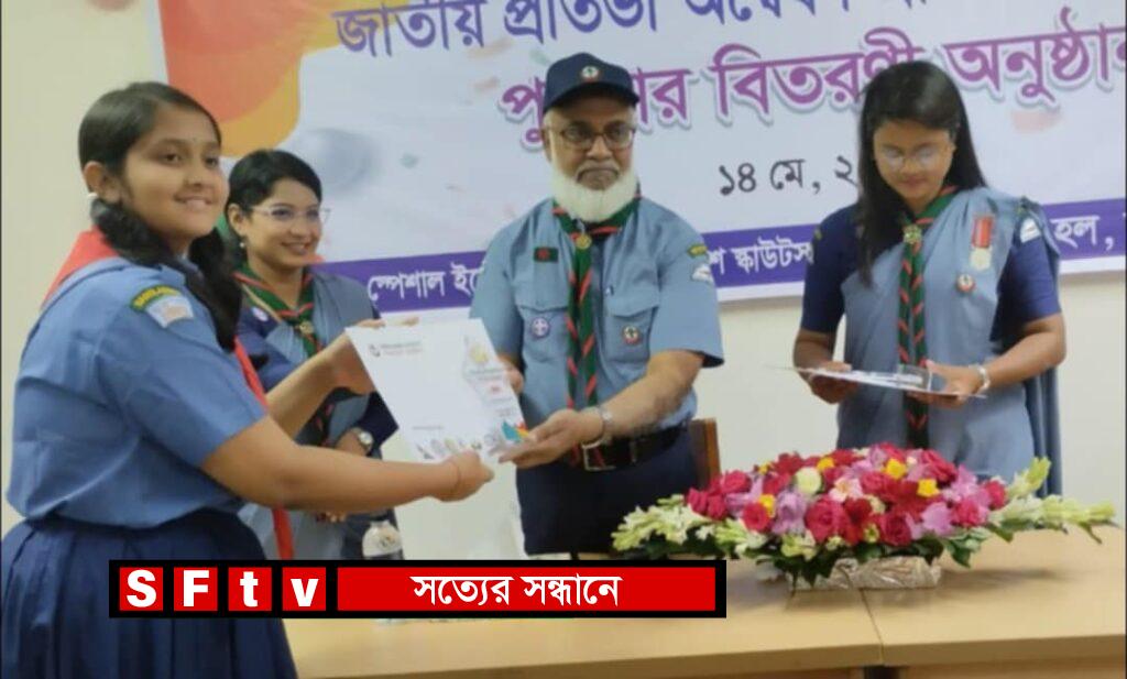 মোঃ ইমরান হোসেন :  বাংলাদেশ স্কাউটস স্পেশাল ইভেন্টস বিভাগের আয়োজনে গত ১৪মে বুধবার জাতীয় প্রতিভা অন্বেষণ প্রতিযোগিতা-২০২৪ এর কবিতা আবৃত্তি পুরস্কার বিতরণী অনুষ্ঠান জাতীয় সদর দপ্তরের শামস্ হলে অনুষ্ঠিত হয়। বাংলাদেশ পুলিশ হাইওয়ে পুলিশের সহকারি ডিআইজি ও বাংলাদেশ স্কাউটস স্পেশাল ইভেন্টস এ্যাডাক কমিটির প্রোগ্রাম কর্মকর্তা ফরিদা ইয়াসমিন এর সভাপতিত্বে অনুষ্ঠিত পুরস্কার বিতরণী অনুষ্ঠানে প্রধান অতিথি ছিলেন কারিগরি ও মাদ্রাসা শিক্ষা বিভাগের সচিব ও বাংলাদেশ স্কাউটস স্পেশাল ইভেন্টস এ্যাডাক কমিটির (সংগঠন, গবেষণা ও মূল্যায়ন) সদস্য ড.খ,ম কবিরুল ইসলাম। বিশেষ অতিথি ছিলেন বাংলাদেশ স্কাউটস স্পেশাল ইভেন্টস এ্যাডাক কমিটির সদস্য মেহনাজ খাতুন সহ বিভিন্ন দপ্তরের কর্মকর্তাবৃন্দ, অভিভাবকবৃন্দ ও বাংলাদেশ স্কাউটসের সদস্যবৃন্দ। উক্ত প্রতিযোগিতায় বাংলাদেশে প্রথম স্থান অধিকার করেছে খুলনা জেলার বটিয়াঘাটা উপজেলার বটিয়াঘাটা হেডঃ পাইঃ মাঃ বিদ্যালয়ের ষষ্ঠ শ্রেণীর ছাত্রী পুষ্পিতা মন্ডল। ইতিপূর্বে পুষ্পিতা মন্ডল উপজেলা, জেলা এবং বিভাগীয় পর্যায়ে চেম্পিয়ান হয়ে জাতীয় পর্যায়ে বাংলাদেশের মধ্যে প্রথম স্থান অধিকার করেছে। তার সাফল্যের পিছনে পিতা- মাতা, বিদ্যালয়ের শিক্ষকমন্ডলী, স্কাউটস শিক্ষক ও উপজেলা প্রশাসনের অসামান্য অবদান রয়েছে বলে পুষ্পিতা মন্ডল জানায়। সে বাটিয়াঘাটা থানা মডেল সঃ প্রাথমিক বিদ্যালয়ের শিক্ষিকা মায়া মন্ডলের কন্যা। অন্যদিকে তার এই সাফল্য শুধু বটিয়াঘাটা উপজেলা নয় সারা বাংলাদেশের সাফল্য বলে জানিয়েছে বটিয়াঘাটা উপজেলা নির্বাহী অফিসার হোসনে আরা তান্নি। তিনি পুষ্পিতা মন্ডলের সুস্বাস্থ্য ও দীর্ঘায়ু কামনা করেছেন।