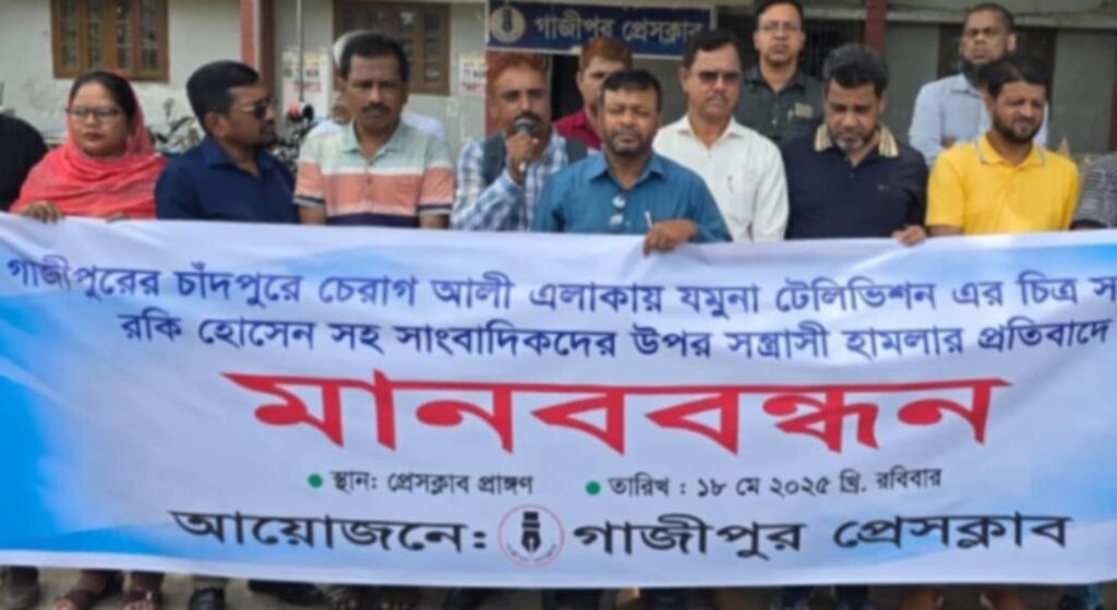 কাপাসিয়ায় সাংবাদিকদের উপর হামলার প্রতিবাদে মানববন্ধন