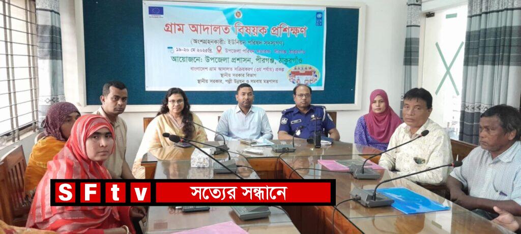 সাকিব আহসান: ঠাকুরগাঁওয়ে পীরগঞ্জে ইউনিয়ন পরিষদের নির্বাচিত সদস্যদের অংশগ্রহণে গ্রাম আদালত বিষয়ক ৫ দিনব্যাপী প্রশিক্ষণ কর্মশালা (২য় পর্যায়) শেষ হয়েছে। উপজেলা প্রশাসনের আয়োজনে মঙ্গলবার সমাপনি দিনে কর্মশালায় উপস্থিত থেকে প্রশিক্ষণ প্রদান করেন উপজেলা নির্বাহী অফিসার রকিবুল হাসান, থানার অফিসার ইনচার্জ তাজুল ইসলাম, সমাজসেবা অফিসার এসএম রফিকুল ইসলাম, যুব উন্নয়ন অফিসার মির্জা মনোয়ার হোসেন, উপজেলা মহিলা বিষয়ক কর্মকর্তা জিন্নাতারা ইয়াসমিন সহ অন্যান্যরা।