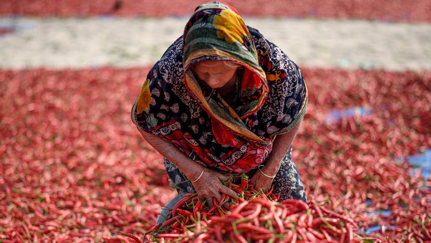 মোঃ খাদেমুল ইসলাম, পঞ্চগড় জেলা প্রতিনিধি :: পঞ্চগড় জেলার তেঁতুলিয়া উপজেলার শালবাহান হাটে লাল টুকটুকে মরিচে সাজানো পুরো হাট। সূর্য ওঠার পর থেকেই হাটে আসতে শুরু করে মরিচ। ইজিবাইক এবং অটোরিকশা করে তেতুলিয়া উপজেলার বাংলাবান্ধা, তীর নই হাট, তেতুলিয়া, বুড়া-বুড়ি ভজনপুর, দেবনগর কয়েকটি ইউনিয়ন থেকে মরিচ বিক্রি করতে আসেন কৃষক ও পাইকাররা। এরপর শুরু হয় বেচাকেনার হাঁকডাক। ভোরে সূর্য বাড়ার সঙ্গে সঙ্গেবেড়ে যায় ক্রেতা–বিক্রেতার ছোটাছুটি ও ব্যস্ততা। ক্রেতার সঙ্গে বিক্রেতার দরদাম মিটলে তা তোলা হয় বড় বড় দাঁড়িপাল্লায়। সেখান থেকে বস্তাবোঝাই হয়ে তা ওঠে ট্রাক ও ভটভটির ওপর। চলে যায় বিভিন্ন গন্তব্যে।এটি তেতুলিয়ার শালবাহান হাট শুকনো মরিচের হাটের চিত্র। এ উপজেলায় মরিচ চাষ বেশি হওয়ায় জেলার একমাত্র মরিচের হাট বসে এখানে।দুটি তিরনই হাট এবং শালবাহান ইউনিয়নে সংলগ্ন হাটে বিভিন্ন গ্রাম গঞ্জ থেকে প্রচুর মরিচ আসে। সপ্তাহের শনি ও বুধবার দুই দিন সকাল ৭টা থেকে দুপুর পর্যন্ত এই হাট বসে। এই অঞ্চলে শালবাহান হাট মরিচের বাজার হিসেবে বেশ প্রসিদ্ধ। প্রতি হাটে কোটি টাকার ওপর মরিচ কেনাবেচা হয়।মরিচ হাট নামে পরিচিত এই হাট এখন লাল মরিচে রঙিন হয়ে উঠেছে। তেতুলিয়া উপজেলার এবং কয়েকটি ইউনিয়ন থেকে কৃষকরা মরিচ বিক্রি করতে আসেনউপজেলার তিরনই ইউনিয়নের কৃষক আব্দুল জব্বার (৪৩) বলেন, বিঘা প্রতি কাঁচামরিচ উৎপাদনে ব্যয় হয় ২০ থেকে ২৫ হাজার টাকা। বিঘায় ৫০ মণের বেশি মরিচ উৎপন্ন হয়। ৫০ মণ কাঁচামরিচ জমিতে লাল রং হয়ে পাকার পর তা রোদে শুকিয়ে ১০ মণের মতো শুকনো মরিচ হয়। শুকাতে শ্রমিকসহ অন্যান্য আরও খরচ হয় প্রায় হাজার দশেক টাকা। সে হিসেবে ১০ মণ মরিচ বিক্রি হচ্ছে ১ লাখ ৬০ হাজার টাকায়। ব্যয় বাদে ১ লাখ ২৫ হাজার টাকার মতো আয় হয় তার মরিচ বিক্রেতা ডেমগছ গ্রামের রফিকুল (৫২) ইনছান আলী (৩০) বলেন, মরিচ চাষ করে এই হাটে বিক্রি করতে আসি। শুধু আমি না এই হাটে মরিচ বিক্রি করতে আসেন আমার মতো প্রায় হাজার খানেক কৃষক। ৪০ কেজিতে দুই কেজি মরিচ বেশি দিতেই হবে। এভাবেই কৃষক মরিচ খুচরা ব্যাবসায়ীদের কাছেই বিক্রি করছেন। মরিচ চাষীরাতাদের ক্ষো ভ প্রকাশ করেন জানান,শুকনো লাল মরিচ খুচরা কেজি ১শত টাকার বিক্রি করতেই হচ্ছে লাল মরিচ বা শুকনো মরিচের কদর রয়েছে দেশব্যাপী। জেলার তেতুলিয়া উপজেলার শত শত বিঘা জমিতে মরিচের ব্যাপক ফল হয়ে থাকে। মাটির গুণাগুণ ও আবহাওয়ার কারণে তেতুলিয়া মরিচের রং সুন্দর ও আকার বড় হয়। এ কারণে , রংপুরসহ বিভিন্ন জেলার ব্যবসায়ীরা তেতুলিয়ার শালবাহান হাটে মরিচ কিনতে আসেন। তবে বেশি মরিচ কেনেন ভোগ্যপণ্য উৎপাদনকারী নামি দামি কয়েকটি প্রতিষ্ঠানের প্রতিনিধিরা মরিচ পাইকারি ক