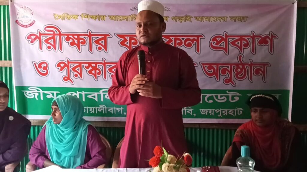 জয়পুরহাট জেলার পাঁচবিবি উপজেলার স্বনামধন্য শিক্ষা প্রতিষ্ঠান জীম পাবলিক প্রি-ক্যাডেট স্কুল-এ আজ রবিবার , ২৫ মে ২০২৫ তারিখে সকাল ১০টায় অনুষ্ঠিত হলো প্রথম সাময়িক পরীক্ষার ফলাফল প্রকাশ ও পুরস্কার বিতরণী অনুষ্ঠান। অনুষ্ঠানটি বিদ্যালয়ের হলরুমে এক আনন্দঘন ও উৎসবমুখর পরিবেশে আয়োজন করা হয়। জয়পুরহাট জেলা প্রতিনিধি মোঃ আবু সুফিয়ান মুক্তার এর পাঠানো তথ্য ও ভিডিও চিত্রে দেখুন বিস্তারিত অনুষ্ঠানে শিক্ষার্থীদের পাশাপাশি উপস্থিত ছিলেন অভিভাবকগণ, বিদ্যালয়ের সম্মানিত শিক্ষক-শিক্ষিকাবৃন্দ এবং ম্যানেজিং কমিটির সদস্যরা। অনুষ্ঠানটি পরিচালনা করেন প্রতিষ্ঠানের জুনিয়র শিক্ষিকা মোছাঃ সুরাইয়া আক্তার। অনুষ্ঠানের সভাপতি হিসেবে দায়িত্ব পালন করেন বিদ্যালয় ম্যানেজিং কমিটির সভাপতি মোঃ হাবিবুর রহমান হাবিব। প্রধান অতিথি হিসেবে উপস্থিত ছিলেন বিদ্যালয়ের পরিচালক মোঃ আবু সুফিয়ান (মুক্তার)। তিনি শিক্ষার গুরুত্ব এবং শিশুদের নৈতিক গঠন ও ভালো মানুষ হিসেবে গড়ে তুলতে অভিভাবকদের ভূমিকা সম্পর্কে গুরুত্বারোপ করে দিকনির্দেশনামূলক বক্তব্য প্রদান করেন। তিনি বলেন,শুধু বইয়ের পড়াশোনা নয়, আমাদের শিশুদের মাঝে নৈতিকতা, শিষ্টাচার ও সামাজিক মূল্যবোধ গড়ে তুলতে হবে। এ ধরনের অনুষ্ঠানের মাধ্যমে তাদের আত্মবিশ্বাস বাড়ে এবং শিক্ষাজীবনে উৎসাহ পাওয়া যায়। অনুষ্ঠানে আরও বক্তব্য রাখেন ম্যানেজিং কমিটির সহ-সভাপতি ডাঃ মোঃ হারুন রশিদ,সিনিয়র শিক্ষিকা মোছাঃ রওশন আরা,জুনিয়র শিক্ষিকা নওরীন আক্তার ফাতেমা ও জুনিয়র শিক্ষিকা শারমিন আক্তার। অভিভাবকদের পক্ষ থেকে আবেগময় বক্তব্য রাখেন নার্সারী শ্রেণির শিক্ষার্থী জয়া মুরমু জুই-এর মা শেফালী হাঁজদা ও তৃতীয় শ্রেণির শিক্ষার্থী সামিহা খাতুন-এর মা মোছাঃ সূচনা আক্তার।অনুষ্ঠানের শেষাংশে পরিচালক মোঃ আবু সুফিয়ান প্রতিটি শ্রেণির মেধাবী শিক্ষার্থীদের হাতে মার্কশিট ও পুরস্কার তুলে দেন। শিশুদের মুখে আনন্দ ও গর্বের হাসি যেন অনুষ্ঠানকে আরও প্রাণবন্ত করে তোলে। অনুষ্ঠানের বিশেষ আকর্ষণ ছিল “শ্রেষ্ঠ মা পুরস্কার”। লটারির মাধ্যমে নির্বাচিত তিনজন অভিভাবক মা এই পুরস্কার লাভ করেন, যা উপস্থিত সবার মাঝে ভিন্ন এক আবেগের জন্ম দেয়। অনুষ্ঠানে সবাই একমত হন যে, এ ধরনের আয়োজন শিক্ষার্থীদের মাঝে উৎসাহ, আত্মবিশ্বাস ও সুস্থ প্রতিযোগিতার মনোভাব গড়ে তোলে। একই সঙ্গে বিদ্যালয় ও অভিভাবকদের মধ্যে সম্পর্ক আরও মজবুত হয়। উল্লেখ্য, ২০১৯ সালে প্রতিষ্ঠিত জীম পাবলিক প্রি-ক্যাডেট স্কুল অল্প সময়ের মধ্যেই শিক্ষার মান ও শৃঙ্খলার দিক থেকে স্থানীয়ভাবে একটি আদর্শ শিক্ষাপ্রতিষ্ঠান হিসেবে পরিচিতি লাভ করেছে। শিক্ষক, অভিভাবক এবং স্কুলের সম্মি