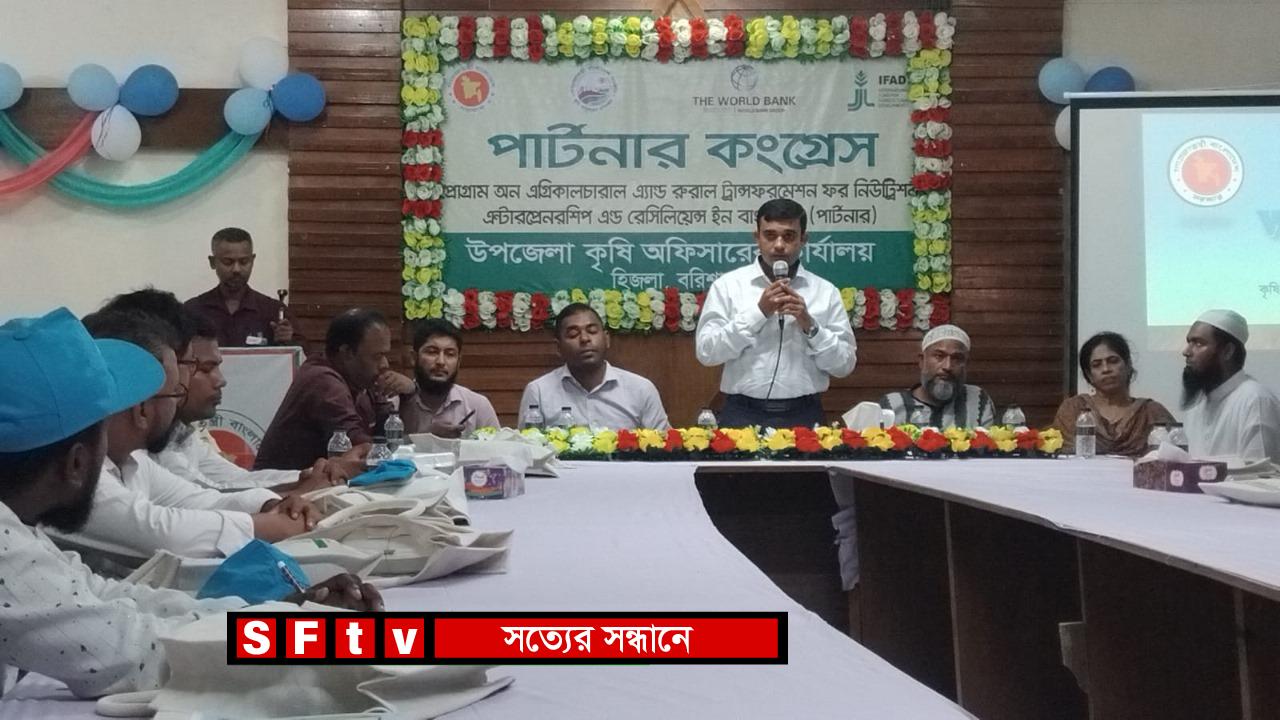 মোঃ জাহিদ হোসেন : মঙ্গলবার (২৭ মে) সকাল ১১টায় বরিশালের হিজলা উপজেলায় কৃষি অফিসের আয়োজনে প্রোগ্রাম অন এগ্রিকালচারাল অ্যান্ড রুরাল ট্রান্সফরমেশন ফর নিউট্রিশন, এন্টারপ্রেনরশিপ এন্ড রেসিলিয়েন্স ইন বাংলাদেশ (পার্টনার) কংগ্রেস অনুষ্ঠিত হয়েছে। উপজেলা পরিষদ সভাকক্ষে উপজেলা কৃষি অফিসার আহসানুল হাবীব আল আজাদ জনি এর সভাপতিত্বে অনুষ্ঠানে প্রধান অতিথি হিসেবে উপস্থিত ছিলেন উপজেলা নির্বাহী অফিসার মোঃ ইলিয়াস সিকদার। এছাড়াও উপজেলা কৃষি সম্প্রসারণ অফিসার মোঃ শামীম আফ্রিদি, উপজেলা বিএনপির সিনিয়র যুগ্ম আহ্বায়ক মোঃ আলতাফ হোসেন খোকন, উপজেলার বিভিন্ন দপ্তরের কর্মকর্তাবৃন্দ, ইউনিয়ন পরিষদের প্রশাসনিক কর্মকর্তা, গণমাধ্যমকর্মী, এনজিও কর্মী, কৃষক ও কৃষাণিগণ উপস্থিত ছিলেন। অনুষ্ঠানে মুক্ত আলোচনায় জানানো হয়েছে, পার্টনার প্রোগ্রামের সার্বিক লক্ষ্য হলো খোরপোষ কৃষিকে বাণিজ্যিক কৃষিতে রূপান্তরের মাধ্যমে দেশের খাদ্য ও পুষ্টি নিরাপত্তা নিশ্চিতকরণ। পার্টনার সারা দেশের কৃষি সম্প্রসারণ অধিদপ্তরের মাধ্যমে বিভিন্ন কার্যক্রম বাস্তবায়ন করছে। এসব কার্যক্রমের মধ্যে একটি গুরুত্বপূর্ণ কার্যক্রম হলো কৃষকদের জন্য পার্টনার মাঠ স্কুল (পিএফএস) বাস্তবায়ন।