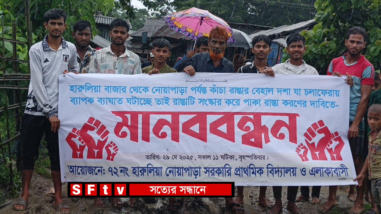 ওমর ফারুক আহম্মদ : নেত্রকোনা জেলার বারহাট্টা উপজেলার বাউসী ইউনিয়নের হারুলিয়া বাজার থেকে, ৭২ নং হারুলিয়া নোয়াপাড়া সরকারি প্রাথমিক বিদ্যালয় পর্যন্ত প্রায় ১.৫ দেড় কিলোমিটার দীর্ঘ একটি কাঁচা সড়ক দীর্ঘদিন ধরে সংস্কার বিহীন অবস্থায় পড়ে রয়েছে। সড়কটি পাকা করণের দাবিতে বৃহস্পতিবার (২৯ মে) সকাল ১১:০০ সময় এই গ্রামে সড়কটি পাকাকরণের দাবিতে পাচঁ টি গ্রামের মানুষ একত্রিত হয়ে মানববন্ধন কর্মসূচি পালন করেন। সরেজমিনে গিয়ে দেখা গেছে, হারুলিয়া বাজার থেকে নোয়াপাড়া পর্যন্ত আর এ গ্রামের লোক সংখ্যা প্রায়:১৪ থেকে ১৫ হাজার মানুষ। হারুলিয়া নোয়াপাড়া পাশে শ্রীরামপুর, লাউফা, ছালিপুরা পাঁচটি গ্রামের মানুষ প্রতিদিন এই সড়ক ব্যবহার করে স্কুল, বাজার, ক্লিনিক সহ বিভিন্ন স্থানে যাতায়াত করে থাকেন। তবে কাঁচা রাস্তার করুণ অবস্থার কারণে চরম দুর্ভোগ ভোগান্তি হচ্ছে এলাকা বাসীর। মানববন্ধনে বক্তারা বলেন, সামান্য বৃষ্টি হলেই সড়কটিতে কাঁদা জমে, সৃষ্টি হয় বড় বড় গর্ত ও জলাবদ্ধতা। এতে ব্যাটারিচালিত অটোরিকশা, ভ্যান ও মোটরসাইকেলসহ ছোট যানবাহন চলাচলে বিঘ্ন ঘটে। প্রায়ই দুর্ঘটনার শিকার হচ্ছেন সাধারণ মানুষ। উক্ত গ্রামের প্রাইমারি স্কুল এর ভারপ্রাপ্ত প্রধান শিক্ষক বলেন, রাস্তাটি খারাপ থাকায়, ছোট ছোট স্কুল গামী ছাত্র-ছাত্রী"রা প্রায়ই স্কুলে অনুপস্থিত থাকেন, ৭২ নং হারুলিয়া নোয়াপাড়া সরকারি প্রাথমিক বিদ্যালয়ের ভারপ্রাপ্ত প্রধান শিক্ষীকা পপি সুলতানা জানান, রাস্তাটি খারাপ থাকায়, যাতায়াতের অসুবিধা হওয়ায়, ছোট ছোট স্কুল গামী ছাত্র-ছাত্রী রা প্রায়ই স্কুলে অনুপস্থিত থাকেন। বিশেষ করে স্কুলগামী ছাত্রছাত্রী ও অসুস্থ রোগীদের যাতায়াত ভীষণ ঝুঁকিপূর্ণ হয়ে উঠেছে।সরেজমিনে ঘুরে দেখা যায়, কাঁচা সড়কটির বিভিন্ন স্থানে বড় বড় গর্ত এবং কাদা জমে আছে। স্থানীয় চালকরা জানান, নিত্যপ্রয়োজনীয় পণ্য পরিবহন করা হয়। কিন্তু সড়কটি চলাচলের অনুপযোগী হয়ে পড়ায় পণ্য পরিবহনে ব্যয় ও সময় উভয়ই বেড়ে যাচ্ছে। মানববন্ধনে অংশগ্রহণকারী এলাকাবাসী দ্রুততম সময়ে সড়কটি পাকা করণের দাবি জানান। এটি শুধু একটি রাস্তা নয়, স্কুল ছাত্র -ছাত্রীর এই এলাকার মানুষের জীবনযাত্রার একটি প্রধান অবলম্বন। তাই সরকারের সংশ্লিষ্ট কর্তৃপক্ষের প্রতি দ্রুত কার্যকর পদক্ষেপ গ্রহণের আহ্বান জানান বক্তারা। মানববন্ধন শেষে উপজেলা নির্বাহী কর্মকর্তা খবিরুল আহসানের বরাবরে একটি স্মারক লিপি প্রদান করা হয়।