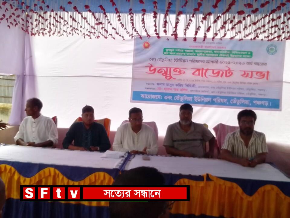 মোঃ খাদেমুল ইসলাম,পঞ্চগড় জেলা প্রতিনিধি: পঞ্চগড়ের তেঁতুলিয়া উপজেলার ৩ নং তেতুলিয়া সদর ইউনিয়ন পরিষদের ২০২৫-২৬ অর্থবছরের উন্মুক্ত বাজেট ঘোষনা করা হয়েছে। শনিবার( ৩১ মে)সকালে ইউনিয়ন পরিষদ কার্যালয়ে চেয়ারম্যান মাসুদ করিম সিদ্দিকের সভাপতিত্বে ইউনিয়ন প্রশাসনিক কর্মকর্তা (সচিব) হারুনুর রশিদ ২০২৫-২৬ অর্থ বছরে তেতুলিয়া ইউনিয়ন পরিষদের জন্য রাজস্ব বাজেট ৪২৮০৭৯০ টাকা উন্নয়ন বাজেট ১৯৩৩৩৭০৯ টাকা সর্বমোট বাজেট ২৩৬১৪৪৯৯ টাকা এতে ২ কোটি ৩৬ লাখ ১৪ হাজার ৪ শত ৯৯ টাকা উন্মুক্ত বাজেট ঘোষণা করেন। পাশাপাশি ২০২৫-২৬ অর্থ বছরের উন্মুক্ত বাজেট ঘোষণায় আয়ের উৎসগুলো জনসম্মুখে উপস্থাপন করে বলেন, ইউনিয়নকে নাগরিক সেবা প্রদানের সর্বোচ্চ অগ্রাধিকার দিয়ে ইতিমধ্যে বিভিন্ন উন্নয়ন প্রকল্প গ্রহণ করা হয়েছে। প্রকল্পগুলো বাস্তবায়ন হলে দ্রুতই ইউনিয়ন পরিষদ জনগনের সেবা প্রদানের অন্যতম হাব হিসাবে রূপান্তরিত হবে। প্রথমে খসড়া বাজেট ঘোষনার পর উপস্থিত সকলের মতামত ও পর্যালোচনা শেষে গৃহিত হয়। উন্মুক্ত বাজেট ঘোষনা সভায় এসময় উপস্থিত ছিলেন ইউনিয়ন বিএনপির সভাপতি মোঃ দেলোয়ার হোসেন, সাধারণ সম্পাদক, মোঃ তোজাম্মেল হক বিপ্লব, বাংলাদেশ জামাতে ইসলামী তেঁতুলিয়া উপজেলা শাখার জয়নাল আবেদীন, তেঁতুলিয়া উপজেলা জাগপার সাধারণ সম্পাদক নজরুল ইসলাম, এনসিপি প্রতিনিধি নয়ন ইসলাম , ক্রীড়া ব্যক্তিত্ব সাজেদার রহমান রাজু, বিএনপি নেতা তাজ উদ্দীন আহমেদ ইউনিয়ন পরিষদের প্যানেল চেয়ারম্যান, সকল ইউপি সদস্য/সদস্যা, উদ্যোক্তা ও কর্মকর্তাসহ গন্যমান্য ব্যক্তি বর্গ প্রমুখ।