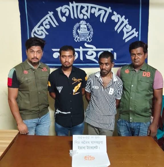 উজ্জ্বল রায়, জেলা প্রতিনিধি নড়াইল থেকে: নড়াইল ডিবি পুলিশের সফল অভিযানে ষাট পিস ইয়াবা ট্যাবলেটসহ দুইজন গ্রেফতার। মাদক ব্যবসায়ের সাথে জড়িত মোঃ রবিউল ইসলাম (৩৮) ও মোঃ রমজান আলী (২২) নামের দুইজন মাদক কারবারিকে গ্রেফতার করেছে নড়াইল জেলা গোয়েন্দা পুলিশ। উজ্জ্বল রায়, জেলা প্রতিনিধি জানান, নড়াইল থেকে গ্রেফতারকৃত মোঃ রবিউল ইসলাম (৩৮) নড়াইল লোহাগড়া থানাধীন এড়েন্দা গ্রামের মৃত মহোর আলীর ছেলে ও মোঃ রমজান আলী (২২) একই গ্রামের মৃত আব্বাস আলীর ছেলে। অদ্য শনিবার (৩১ মে) নড়াইল জেলার সদর থানাধীন আউড়িয়া ইউনিয়নের আউড়িয়া গ্রামস্হ মেসার্স স্টার ব্রিকস এর সামনে পাঁকা রাস্তার উপর হতে তাকে আটক করা হয়। গোপন সংবাদের ভিত্তিতে জেলা গোয়েন্দা শাখার অফিসার ইনচার্জ মোঃ শাহাদারা খান (পিপিএম) এর তত্ত্বাবধানে এসআই (নিঃ) জাহাঙ্গীর আলম, এএসআই(নিঃ) শেখ কামরুজ্জামান ও এএসআই (নিঃ) সেলিম মুন্সি সঙ্গীয় ফোর্সসহ অভিযান চালিয়ে মোঃ রবিউল ইসলাম (৩৮) ও মোঃ রমজান আলী (২২) কে গ্রেফতার করে। এ সময় ধৃত আসামির নিকট থেকে অবৈধ মাদকদ্রব্য ষাট পিস ইয়াবা ট্যাবলেট জব্দ করা হয়। এ সংক্রান্তে নড়াইল সদর থানায় মাদকদ্রব্য নিয়ন্ত্রণ আইনে একটি মামলা রুজু করা হয়েছে। আসামিকে বিজ্ঞ আদালতে সোপর্দ করা হয়েছে। নড়াইল জেলা পুলিশ সুপার কাজী এহসানুল কবীর’র নির্দেশনায় মাদকমুক্ত নড়াইল গড়ার লক্ষ্যে জেলা পুলিশ আন্তরিকভাবে কাজ করে যাচ্ছে। উজ্জ্বল রায়, জেলা প্রতিনিধি নড়াইল থেকে
