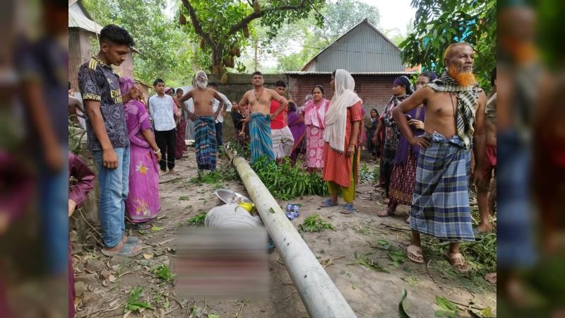 মো:রুবেল মিয়া উপজেলা প্রতিনিধি মির্জাপুর টাঙ্গাইল । :: টাঙ্গাইলের মির্জাপুরে ইউক্যালিপটাস গাছ কাটার সময় বিদ্যুতের খুঁটি ভেঙে চাপা পড়ে আসাদ মিয়া (৭৫) নামে এক বৃদ্ধ নিহত হওয়ার ঘটনা ঘটেছে। রবিবার (১ জুন) দুপুরে মির্জাপুর পৌরসভার পাহাড়পুর এলাকায় এ দুর্ঘটনা ঘটে। নিহত আসাদ মিয়া পাহাড়পুর এলাকার নবাব আলীর ছেলে। সে পেশায় একজন সবজি বিক্রেতা ছিলেন।প্রত্যক্ষদর্শীরা জানান, মির্জাপুর পৌরসভার পাহাড়পুর এলাকার নুরুল হক ভূইয়ার স্ত্রী মিনু বেগম তার বাড়ির বড় ইউক্যালিপটাসসহ কয়েকটি গাছ দেওহাটা বাজারের তিনজন কাঠ ব্যবসায়ীর কাছে বিক্রি করেন। শ্রমিকরা গত এক সপ্তাহ ধরে গাছগুলো কাটার কাজ করছিলেন। রবিবার দুপুরে প্রায় ১০০ ফুট দীর্ঘ একটি গাছ কাটার সময় সেটি বিদ্যুতের তারের ওপর পড়ে যায়। এতে সঙ্গে সঙ্গে দুটি খুঁটি ভেঙে পড়ে। ঠিক সেই সময় রাস্তা দিয়ে বাড়ি ফিরছিলেন আসাদ মিয়া। খুঁটির নিচে চাপা পড়ে ঘটনাস্থলেই তার মৃত্যু হয়। নিহত আসাদ মিয়া সাহাপাড়া বাবুবাজারে সবজি বিক্রি করে বাড়ি ফিরছিলেন।খবর পেয়ে মির্জাপুর ফায়ার সার্ভিস ঘটনাস্থলে পৌঁছে মরদেহ উদ্ধার করে। স্থানীয় সাবেক দুই কাউন্সিলর আজম খান ও শামীম খান বলেন, রাস্তার পাশে গাছ কাটার সময় প্রয়োজনীয় সতর্কতা অবলম্বন করা হয়নি। বিশাল আকৃতির গাছ এভাবে কাটার আগে বিদ্যুৎ সংযোগ বিচ্ছিন্নসহ নিরাপত্তা ব্যবস্থা নেওয়া উচিত ছিল।এ বিষয়ে পল্লী বিদ্যুৎ মির্জাপুর জোনাল অফিসের উপ-মহাব্যবস্থাপক (ডিজিএম) মো. মোকলেছুর রহমান জানান, ঘটনাস্থলে তদন্ত করে দায়ীদের বিরুদ্ধে আইনানুগ ব্যবস্থা নেওয়া হবে।