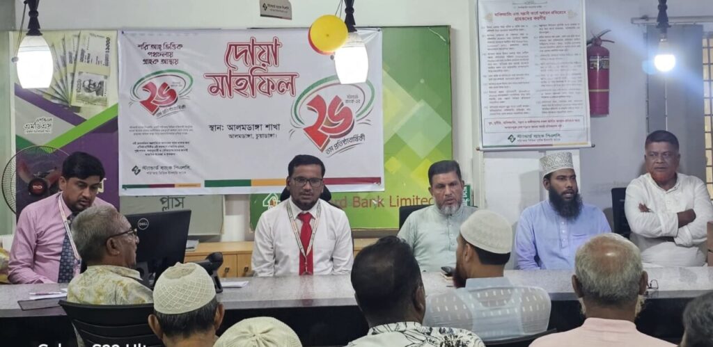 দোয়া মাহফিল পরিচালনা করেন মাওলানা মোহাম্মদ হাসমত উল্লাহ। ব্যাংকের গ্রাহক বৃন্দ ও শহরের গণ্যমান্য ব্যক্তিবর্গ উপস্থিত ছিলেন।