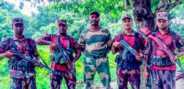মোঃ রনি রজব ভোলাহাট উপজেলা (প্রতিনিধি) :: অ’বৈ’ধ’ভাবে বাংলাদেশে ঢুকে পড়ায় চাঁপাইনবাবগঞ্জের নারায়ণপুরে ভারতীয় সীমান্তরক্ষী বাহিনীর (বিএসএফ) এক সদস্যকে আ’ট’ক করে বিজিবির কাছে সো:প:র্দ করেছে স্থানীয়রা। বুধবার (৪ মে) সকালে বিষয়টি নিশ্চিত করেছে ৫৩ বিজিবির অধিনায়ক লেফট্যানেন্ট কর্ণেল ফাহাদ মাহমুদ রিংকু।তিনি জানান, আ’ট’ক বিএসএফ সদস্যের নাম শ্রী গনেশ। তিনি ভারতীয় নুরপুর ৭১ বিএসএফ ক্যাম্পের সদস্য। বিজিবি জানায়, এদিন সকালে জহুরপুর সীমান্ত পিলার ১৯ এর সাব পিলার ৫-এর সামনে সাতরশিয়া এলাকায় গরু-ছাগল চরাচ্ছিলো এক রাখাল। এসময় তাকে ধাওয়া করতে গিয়ে বাংলাদেশে ঢুকে পড়ে ওই বিএসএফ সদস্য। এসময় তাকে আ’ট’ক করে বিজিবির কাছে সোপর্দ করে এলাকাবাসী। আ’ট’ক হওয়া ওই বিএসএফ সদস্যকে হস্তান্তরের প্রক্রিয়া চলছে বলেও জানিয়েছে বিজিবি। এ বিষয়ে বিজিবি এখন পর্যন্ত আনুষ্ঠানিক কোনো বিবৃতি দেয়নি।