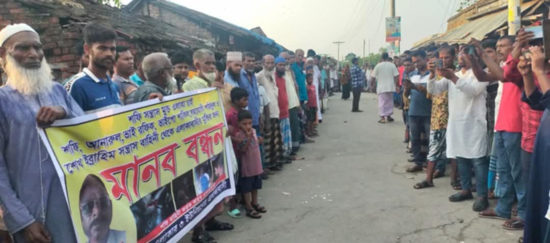 পাইকগাছায় সন্ত্রাসী শফির গ্রেফতারের দাবিতে এলাকাবাসীর মানববন্ধন
