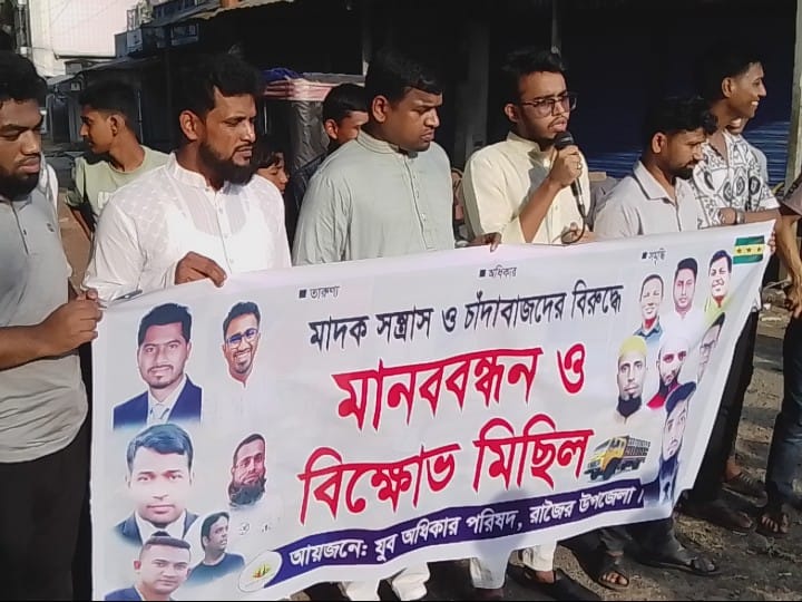 মোঃ ইলিয়াছ খান বিশেষ প্রতিনিধি। রাজৈর উপজেলা গণ অধিকার পরিষদের আয়োজনে মোঃ নুর আলম এর সভাপতিত্বে ও সঞ্চালনায় রাজৈর থানার মোড়ে মানববন্ধন ও বিক্ষোভ মিছিল অনুষ্ঠিত হয়। উক্ত অনুষ্ঠানে বক্তব্য রাখে মাদক সন্ত্রাস বিরোধী সম্পাদক মোঃ নুর আলম মোল্লা, বক্তব্য রাখে মাদারীপুর জেলা যুব অধিকার পরিষদের সাধারণ সম্পাদক মোঃ ওহিদুল শেখ, মাদারীপুর জেলা যুগ্ম সম্পাদক মোঃ আল-আমিন সর্দার নয়ন, কেন্দ্রীয় সহ সংগঠনিক সম্পাদক মোঃ বিল্লাল হোসেন, কেন্দ্রীয় ছাত্র অধিকার পরিষদের মোঃ সুলতান মোহম্মুদ,জেলা যুগ্ম সাধারণ সম্পাদক মোঃ বাবু এবং স্থানীয় নেতাকর্মী বৃন্দ। মানববন্ধন শেষে বিক্ষোভ মিছিল শহরের প্রধান প্রধান সড়ক প্রদক্ষিণ করে থানার মোড়ে এসে শেষ হয়।