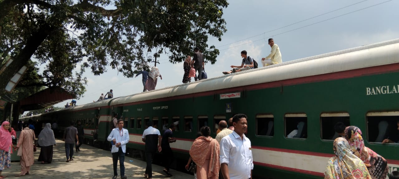 সাকিব আহসান প্রতিনিধি,পীরগঞ্জ, ঠাকুরগাঁও :: ঈদুল আযহা'র ছুটি শেষে নিজ নিজ কর্মস্থলে যোগ দিতে গ্রাম-গঞ্জ-নগর-শহর হতে পেশাজীবী জনমানুষ ছুটছে বাংলাদেশের নিউক্লিয়াস তথা রাজধানী ঢাকা'র দিকে। ঈদের পরে প্রত্যাবর্তনের যাত্রা হওয়া উচিত ছিল নিরাপদ ও আরামদায়ক। কিন্তু যাত্রীদের দুর্ভোগ, গরমে অসুস্থতা, ট্রেনের ছাদে জীবনের ঝুঁকি নিয়ে ভ্রমণ—সব মিলিয়ে সরকারের যোগাযোগ ও পরিবহন ব্যবস্থাপনার দুর্বলতা আবারও চোখে আঙুল দিয়ে দেখিয়ে দিয়েছে। এই যাত্রা তথবৈচ স্বাভাবিক দৃশ্যমান হওয়ার কথা থাকলেও প্রকৃতি দৃশ্যপট পাল্টে দিয়েছে। সপ্তাহব্যাপী তাপপ্রবাহ /দাবদাহ পরিবেশ, প্রতিবেশকে ঝাঁঝিয়ে তুলেছে। এ ফল ভোগ করছি আমরা। পীরগঞ্জ রেলওয়ে স্টেশনে সরেজমিনে গিয়ে যা দেখা গেল ; তা দেখে হৃদয়ে আচমকা রক্তক্ষরণ ঘটে গেল। ট্রেনের বগিতে 'ঠাই নেই ঠাই নেই' অবস্থা। পরোটা ভাজা তাওয়ার মত গরম হওয়া ট্রেনের ছাদে যখন মানুষ উঠতে শুরু করল তখন নিজের পায়ের তলা থেকে মাটি খসে গেল। এত ঝুঁকি? কোন জীবনের জন্য? কেন? রাষ্ট্রযন্ত্র কী কোনো বিকল্প রাখেনি? নাকি ইশতেহারেই সমাপ্তি!বহু যাত্রী টিকিট না পেয়ে ট্রেনের ছাদে চড়ে গন্তব্যে ফিরছেন। ছাদে ঠাঁই না পেয়ে অনেকে ট্রেনের সংযোগস্থল বা দরজায় ঝুঁলন্ত অবস্থায় ছিলেন। এই দৃশ্য যেন প্রশাসনের নজর এড়িয়ে যায়নি, কিন্তু কার্যকর কোনো ব্যবস্থা এখনও দেখা যায়নি। রেলকর্তৃপক্ষের সামনেই ওই সংগ্রামী নারী পুরুষ ট্রেনের বগির ছাদে উঠছেন; কিন্তু কর্তৃপক্ষ দেখেও না দেখার ভান করে বসে আছে। অবশ্য রেল কর্তৃপক্ষের লোকবলও কম। সেদিকে সংশ্লিষ্ট মন্ত্রণালয় খেয়াল রেখেছে কি না সেটা অজানা। এই গরমে দীর্ঘ ভ্রমণে অসুস্থ হয়ে পড়ছেন অনেক যাত্রী, বিশেষ করে বৃদ্ধ ও শিশুরা। পানির সংকট, স্যানিটেশনের অভাব এবং গাদাগাদি ভিড় স্বাস্থ্য ঝুঁকি বাড়াচ্ছে। তাপমাত্রা ছিল ৩৮ ডিগ্রি সেলসিয়াসের কাছাকাছি, যা পরিস্থিতিকে আরও ভয়াবহ করে তুলেছে।