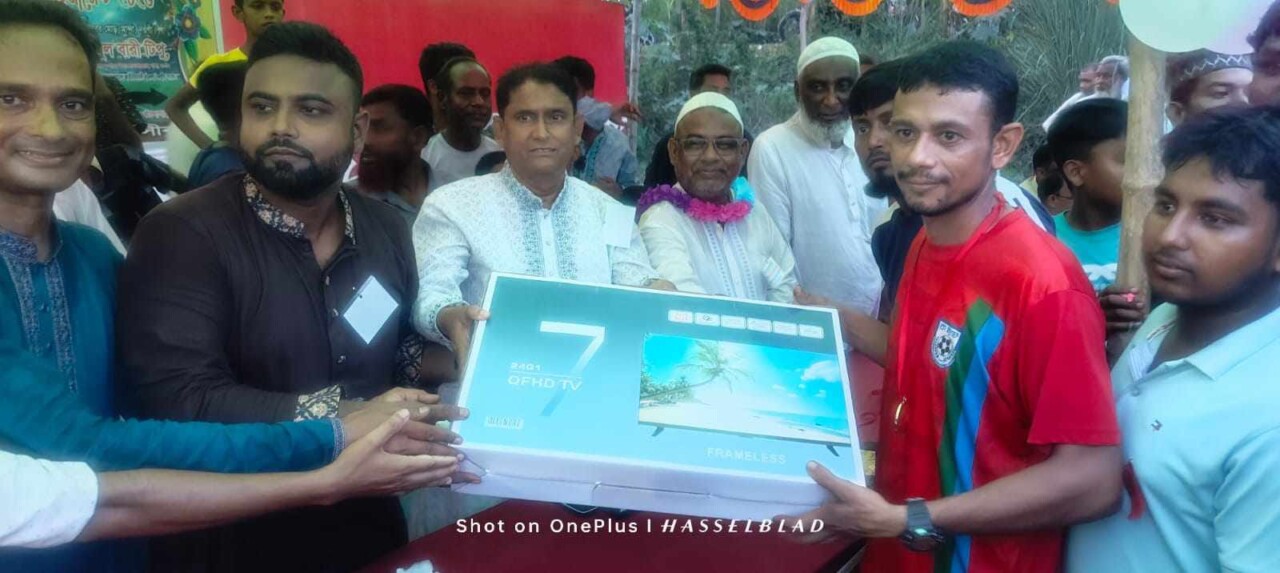 মান্দা প্রতিনিধি,,, নওগাঁ মান্দায় মীর আহম্মেদ ফুটবল টুর্ণামেণ্ট ২০২৫ অনুষ্ঠিত হয়েছে। উক্ত ফাইনাল খেলায় প্রধান অতিথি হিসেবে উপস্থিত থেকে পুরস্কার বিতরণ করেন, বাংলাদেশ মফস্বল সাংবাদিক ইউনিয়ন(BMUJ)নওগাঁ জেলা শাখার প্রধান উপদেষ্টা ডাঃমোঃইকরামুল বারী টিপু এমবিবিএস এবং সভাপতিত্ব করেন মোঃসাইদূর রহমান সাবেক চেয়ারম্যান। পূর্ব পাইকপাড়া গ্রামের যুব সম্প্রদায়ের উদ্যোগে "মীর আহম্মেদ স্মৃতিফুটবল টুর্ণামেন্ট ২০২৫"- এর ফাইনাল খেলার পুরষ্কার বিতরণ অনুষ্ঠানে, সভাপতিত্ব করেন সাবেক ইউপি চেয়ারম্যান সাইদুর রহমান মোল্লা , প্রধান অতিথি হিসেবে উপস্থিত ছিলেন মান্দা উপজেলা বিএনপি'র সাবেক সাধারণ সম্পাদক ও উপজেলা চেয়ারম্যান ডাঃ ইকরামুল বারী টিপু এমবিবিএস। বিশেষ অতিথি ছিলেন ছাত্রদল কেন্দ্রীয় সংসদের সাবেক সহ সাধারণ সম্পাদক আব্দুলাহিল কাফি, নওগাঁ এ্যাডভোকট বার এ্যাসোসিয়েশনের সাধারণ সম্পাদক শওকত ইলিয়াস কবির, বাংলাদেশ কলেজ শিক্ষক সমিতির মান্দা উপজেলা শাখার সভাপতি মহসিন আলী, জাতীয় বিশ্ববিদ্যালের কর্মকর্তা সাবেক ছাত্রদল নেতা আব্দুল মান্নান প্রমুখ ।পুরস্কার বিতরণ অনুষ্ঠানের শেষে, প্রধান অতিথি ডাঃইকরামুল বারী টিপু বলেন,আপনারা দোয়া করিবেন আগামী দিনে যদি বি এন পি দল রাষ্ট্রীয় ভাবে ক্ষমতায় আসে এবং যদি আপনাদের প্রতিনিধি নির্বাচিত হই তাহলে, আপনাদের খেলাধুলার জন্য যাবতীয় সুযোগ সুবিধার জন্য চেষ্টা করবো ইনশাআল্লাহ। বর্তমান প্রেক্ষাপটে আমরা যা দেখছি তা হচ্ছে, যুব সমাজকে মাদকে অন্ধকারে নিয়ে গেছে। একমাত্র এই খেলাধুলার মাধ্যমে সম্ভব সেখান থেকে ফিরে আসা।খেলাধুলার সকল ইভেন্ট আমাদের চালু করতে হবে যদিও ব্যায়বহুল একমাত্র রাষ্ট্রীয় ভাবে সহযোগিতা করলে তা সম্ভব।আমরা মান্দাবাসী নিজের যা আছে তার মধ্য দিয়ে এ-সব খেলাধুলা চালিয়ে যাব ইনশাআল্লাহ। এসময় হাজারো ফুটবল প্রেমী দর্শক জোর করতালি দিয়ে ডাঃইকরামুল বারী টিপু কে উৎসাহ দেখান।