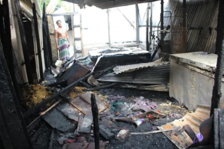 লিমন মহম্মদপুর (মাগুরা) প্রতিনিধিঃ মাগুরার মহম্মদপুরে গভীর রাতে কাঠ ব্যবসায়ীর বাড়িতে ইসলাম মোল্যার বাড়িতে আগুনে পুড়ে সর্বশান্ত হয়েছে। এ ঘটনায় ক্ষতি হয়েছে দশ লাখের উপরে। ইসলাম মোল্যা উপজেলার পলাশবাড়িয়া ইউনিয়নের মহেশপুর উত্তরপাড়ার মৃত কালু মোল্যার ছেলে। শুক্রবার দিবাগত রাত দেড়টার দিকে এ ঘটনা ঘটে। পরিবার ও স্থানীয়রা জানান, শুক্রবার গভীর রাতে পরিবারের সবাই যখন ঘরে ঘুমিয়ে ছিলেন। হঠাৎ চারদিকে আগুন দেখতে পেয়ে সবাইকে নিয়ে দ্রুত ঘরের বাইরে আসে। ইসলাম মোল্যা ও তার পরিবারের সদস্যদের চিৎকার দিলে স্থানীয় লোকজন ছুটে এসে আগুন নিয়ন্ত্রণে নেওয়ার চেষ্টা করেও কাজ হয়নি। এর মধ্যে কাঠ ব্যবসায়ী ইসলাম মোল্যার সব কিছু, বসবাসের ঘর, রান্না ঘর সহ ঘরে থাকা নগদ অর্থ, স্বর্ণালংকার সহ যাবতীয় আসবাবপত্র পুড়ে ভস্মীভূত হয়ে যায়। তবে কেউ আগুনের সুত্রপাত সম্পর্কে বিস্তারিত জানাতে পারে নাই। অনেকের ধারনা বৈদ্যুতিক শর্ট-সার্কিট অথবা কেউ শত্রুতা করে আগুন লাগিয়ে দিতে পারে। সরেজমিন, আগুনে পুড়ে সর্বস্ব হারিয়ে ইসলাম মোল্যা ও তার পরিবার বর্তমানে খোলা আকাশের নিচে আশ্রয় নিয়েছে। মহম্মদপুর উপজেলা নির্বাহী অফিসার শাহীনুর আক্তার বলেন, আগুনে ক্ষতিগ্রস্ত পরিবারের পক্ষ থেকে কোন আবেদন এখনো পায়নি। যদি আবেদন করে, তাহলে উপজেলা প্রশাসনের পক্ষ থেকে দ্রুতই সহযোগিতা করা হবে।