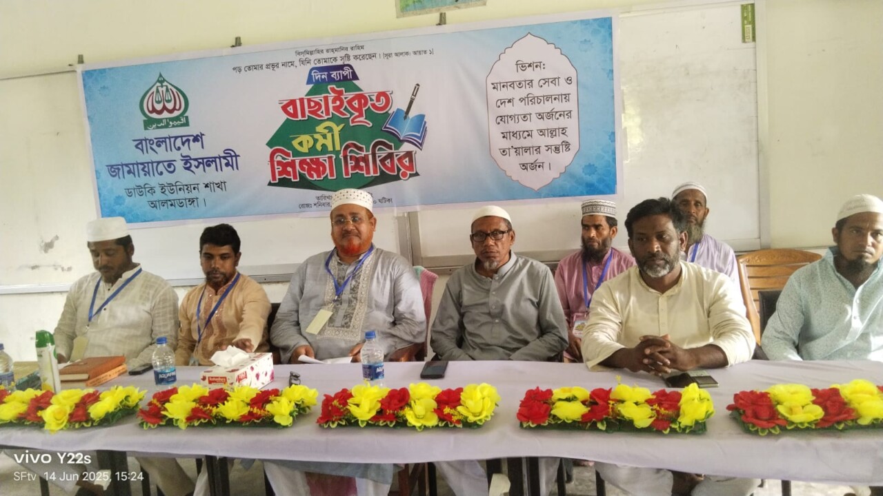 বাংলাদেশ জামায়াতে ইসলামী ডাউকি ইউনিয়ন শাখা কতৃক আয়োজিত গতকাল শনিবার দিন ব্যাপী বাছাইকৃত কর্মি শিক্ষা শিবির অনুষ্ঠিত হয়েছে। উক্ত কর্মি শিক্ষা শিবির প্রধান অতিথি হিসেবে উপস্থিত ছিলেন বাংলাদেশ জামায়াতে ইসলামী চুয়াডাঙ্গা জেলা শাখার আমির কেন্দ্রীয় মজলিসে শূরার অন্যতম সদস্য চুয়াডাঙ্গা -২ আসনের জামায়াত মনোনীত সংসদ সদস্য পদপ্রার্থী জননেতা রুহুল আমিন। বিশেষ অতিথি হিসেবে উপস্থিত ছিলেন চুয়াডাঙ্গা জেলা শাখার সহকারী সেক্রেটারি ও চুয়াডাঙ্গা -১ আসনে জামায়াত মনোনীত সংসদ সদস্য পদপ্রার্থী জননেতা এ্যাডঃ মাসুদ পারভেজ রাসেল, জেলা শাখার কর্মপরিষদ সদস্য আলতাফ হোসাইন, জেলা আইন আদালত বিষয়ক সম্পাদক দারুসসালাম, জেলা যুব বিভাগের সভাপতি শেখ নূর মোহাম্মদ হুসাইন টিপু, উপজেলা আমির প্রভাষক শফিউল আলম বকুল, সেক্রেটারি মামুন রেজ, সহকারী সেক্রেটারি বেলাল হুসাইন, ইউনিয়ন আমির সজিবুর রহমান। অনুষ্ঠানের শুরুতে দারসুল কোরআন পেশ করেন বদরগন্জ বাকী বিল্লাহ কামিল মাদ্রাসার প্রিন্সিপাল ডঃ মোঃ রুহুল আমিন। অনুষ্ঠানে উদ্বোধনী উদ্বোধনী বক্তব্য দেন ডাউকি ইউনিয়ন শাখার সহকারী সেক্রেটারি ও টি সির পরিচালক আলাউদ্দিন, অফিস বিভাগে ছিলেন ইউনিয়ন সহকারী সেক্রেটারি শরিফুল ইসলাম, মেহমান বিভাগে দায়িত্ব পালন করেন ডাউকি ইউনিয়ন শাখার কর্মপরিষদ সদস্য শরিফুল ইসলাম, খাদ্য বিভাগে দায়িত্ব পালন করেন বদরুদ্দীন মেম্বার, শৃঙ্খলা বিভাগে দায়িত্ব পালন করেন আনিছুর রহমান মেম্বার। পানি ও সেনিটেশন বিভাগে দায়িত্ব পালন করেন বাদল রশিদ, চিকিৎসা বিভাগে দায়িত্বরত ছিলেন মুন্সি বায়েজিদ হোসেন সার্বিক ব্যবস্থাপনায় ছিলেন বাংলাদেশ জামায়াতে ইসলামী ডাউকি ইউনিয়ন শাখার সেক্রেটারি ডাঃ আব্দুস সালাম আরও উপস্থিত ছিলেন মুন্সি আব্দুস সালাম, সাইদুর রহমান, মেহেদী হাসান সলক,আব্বাস উদ্দিন, রাসেল প্রধান অতিথি তার বক্তৃতায় বলেন জামায়াত কর্মী মানেই সমাজ কর্মী, কর্মীদের কাঙ্খিত মানে পৌছাতে হলে ব্যক্তিগত অধ্যয়ন ও দায়ী ইলাল্লার ভূমিকা পালন করতে হবে।
