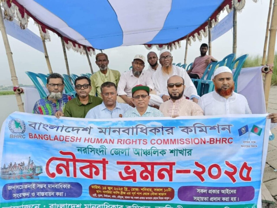 আবু নাঈম রিপন:নরসিংদী থেকে: বাংলাদেশ মানবাধিকার কমিশন নরসিংদী জেলা আঞ্চলিক শাখার উদ্যোগে প্রতি বছরের ন্যায় অদ্য ১৪ইং জুন ২০২৫ ইং শনিবার সকালে নৌকা ভ্রমণের আয়োজন করা হয়। উক্ত নৌকা ভ্রমণে আব্দুল হান্নান মানিক এর সভাপতিত্বে উপস্থিত ছিলেন, বাংলাদেশ মানবাধিকার কমিশন নরসিংদী জেলা আঞ্চলিক শাখার নির্বাহী সভাপতি মোঃ রতন মিয়া, সাধারণ সম্পাদক নগেন্দ্র নাথ বনিক,সহ সভাপতি উবায়েদ উল্লা সরকার,সহ সভাপতি মোঃ ফয়সাল বসির,সহ সভাপতি মোঃ জসিম উদ্দিন, যুগ্ম সাধারণ সম্পাদক হানিফ সিকদার, যুগ্ম সাধারণ সম্পাদক মোঃ আবুল কাশেম ভূঁইয়া যুগ্ম সাধারণ সম্পাদক মোঃ মামুন ভুঁইয়া, সাংবাদিক সম্পাদক আবদুর রহমান বিপ্লব, দপ্তর সম্পাদক মোঃ আল আমিন,আইন বিষয়ক সম্পাদক অ্যাডভোকেট কামাল হোসেন প্রচার সম্পাদক মোঃ আওলাদ হোসেন, প্রকাশনা সম্পাদক মোঃ আব্দুল্লাহ্ সমাজ কল্যাণ সম্পাদক মোঃ আনিছুর রহমান খান, সাংস্কৃতিক বিষয়ক সম্পাদক উজ্জল আচার্য, কার্যকারী সদস্য মোঃ সিরাজ খাঁন প্রমুখ।