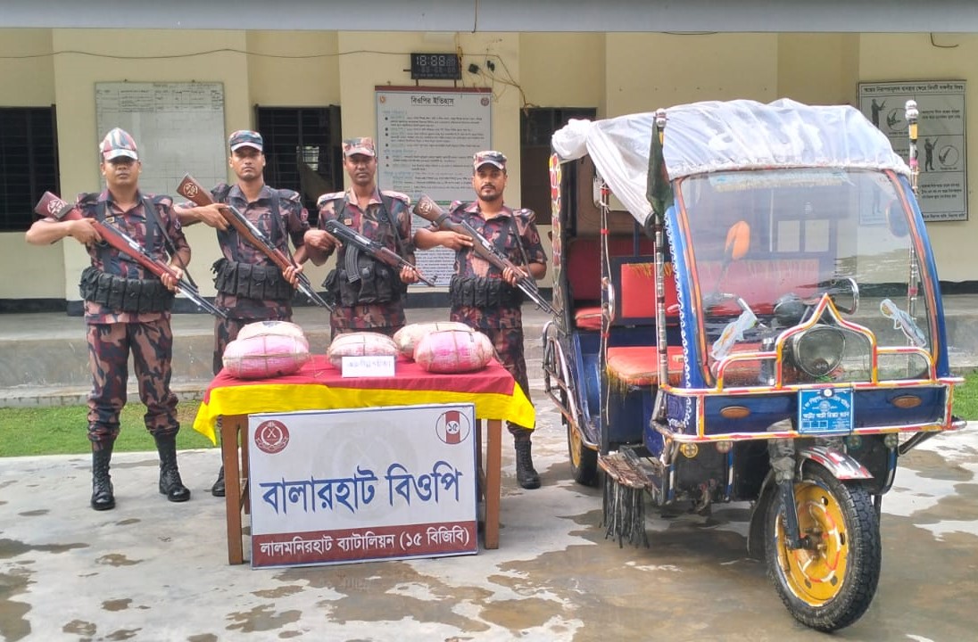 ইসমাইল আশরাফ বিশেষ প্রতিনিধি।। লালমনিরহাট ব্যাটালিয়ন (১৫ বিজিবি) এর দায়িত্বপূর্ণ এলাকায় বিজিবি’র বিশেষ টহলদল কর্তৃক সীমান্ত এলাকায় সফল অভিযান পরিচালনা করে বিপুলপরিমাণ গাঁজা, ইস্কাফ সিরাপ ও ফেন্সিডিল জব্দ করেছে। সোমবার (১৬ জুন) দুপুরে লালমনিরহাট ব্যাটালিয়ন ১৫ বিজিবি প্রেস বিজ্ঞপ্তিতে এ তথ্য নিশ্চিত করা হয়। প্রেস বিজ্ঞাপ্তিতে জানানো হয়, গোপন সংবাদের ভিত্তিতে বালারহাট বিওপি’র কুরুশা-ফেরুসা, শিমুলবাড়ী বিওপি’র নন্দিরকুটি এবং অনন্তপুর বিওপি’র নাগরাজ (থানা-ফুলবাড়ী, জেলা-কুড়িগ্রাম) নামক স্থানে গতকাল গভীর রাতে বিজিবি’র ০৩টি বিশেষ টহলদল বিশেষ অভিযান চালায়। এ সময় কতিপয় সন্দেহজনক ব্যক্তির গতিবিধি লক্ষ্য করে বিজিবি টহল দলের সদস্যরা ধাওয়া করলে চোরাকারবারীরা তাদের সাথে থাকা মালামাল ফেলে অন্ধকারে সুযোগে বুঝে পালিয়ে যায়। পরে ফেলে রাখা মালামাল গুলো তল্লাশি করে ০১টি ইজিবাইকসহ বিপুল পরিমান মাদকদ্রব্য উদ্ধার করা হয়। লালমনিরহাট ব্যাটালিয়ন (১৫ বিজিবি) এর অধিনায়কের পক্ষ থেকে জানানো হয়, উদ্ধারকৃত মাদকদ্রব্যের মধ্যে গাঁজা ১২৬.৭ কেজিসহ ইজিবাইক ০১টি বাজার মূল্য-৫,৯৩,৪৫০/-, ইস্কাফ সিরাপ-৩৩৯ বোতল বাজার মূল্য-১,৩৫,৬০০/- এবং ফেন্সিডিল-১০৯ বোতল বাজার মূল্য-৪৩,৬০০/-। যার সর্বমোট বাজার মূল্য-৭ লক্ষ ৭২ হাজার ৬’শত ৫০ টাকা। এ ঘটনায় সংশ্লিষ্ট চোরাকারবীদের তথ্য সংগ্রহ পূর্বক তাদের বিরুদ্ধে মামলার প্রস্তুতির কার্যক্রম প্রক্রিয়াধীন রয়েছে। লালমনিরহাট ব্যাটালিয়ন (১৫ বিজিবি) এর কমান্ডিং অফিসার লেফটেন্যান্ট কর্নেল মেহেদী ইমাম, পিএসসি” বলেন- “দেশের যুবসমাজকে মাদকমুক্ত রাখতে বিজিবি সর্বদা সতর্ক ও প্রস্তুত রয়েছে। সীমান্তে মাদক প্রবেশ ঠেকাতে আমাদের নজরদারি আরও জোরদার করা হয়েছে।” এছাড়া তিনি স্থানীয় জনগণকে মাদকবিরোধী অভিযান পরিচালনা এবং প্রতিরোধে সহযোগিতা করার আহ্বান জানান এবং গোপন তথ্য প্রদানকারীদের পরিচয় গোপন রাখার নিশ্চয়তা দেন। মাদকের বিরুদ্ধে এমন সফল অভিযানে এলাকাবাসী খুশি ও সাধারণের মনে স্বস্তি ফিরে এসেছে।