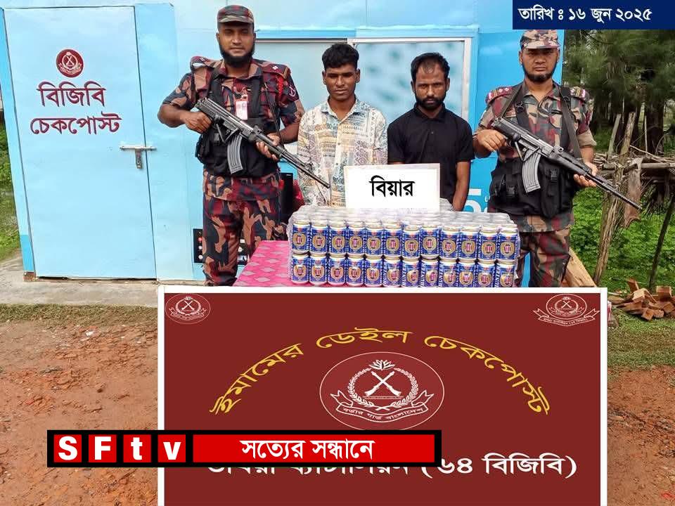 সুত্র জানায়, ১৬জুন ভোররাত সোয়া ৩টারদিকে উখিয়া ৬৪বিজিবি ব্যাটালিয়নের দায়িত্বপুর্ণ কক্সবাজার হতে টেকনাফগামী একটি প্রাইভেট কারযোগে মাদকের চালান পাচারের গোপন সংবাদের ভিত্তিতে ইমামের ডেইল অস্থায়ী চেকপোস্টে দায়িত্বরত জওয়ানেরা গাড়িটি চেকপোস্টের নিকট আসলে কর্তব্যরত বিজিবির সদস্যগণ গাড়িটি তল্লাশীর জন্য থামান। বিজিবি টহল দল তল্লাশীকালে আরোহী টেকনাফ কলেজ পাড়ার ফজলে করিমের পুত্র আব্দুল হামিদ(২৬) এবং মোঃ হোসনের পুত্র মোঃ ইউনুস (২৮) এর নিকট রক্ষিত লাল ও সবুজ রঙ্গের ২টি কাপড়ের ব্যাগের মধ্যে ১৯২ক্যান বিয়ারসহ আটক করা হয়। ধৃত আসামীগণ প্রাথমিক জিজ্ঞাসাবাদে, উল্লিখিত বিয়ার কক্সবাজার হতে ক্রয় করতঃ টেকনাফে বেশী দামে বিক্রেয়ের উদ্দেশ্যে নিয়ে যাচ্ছিল।