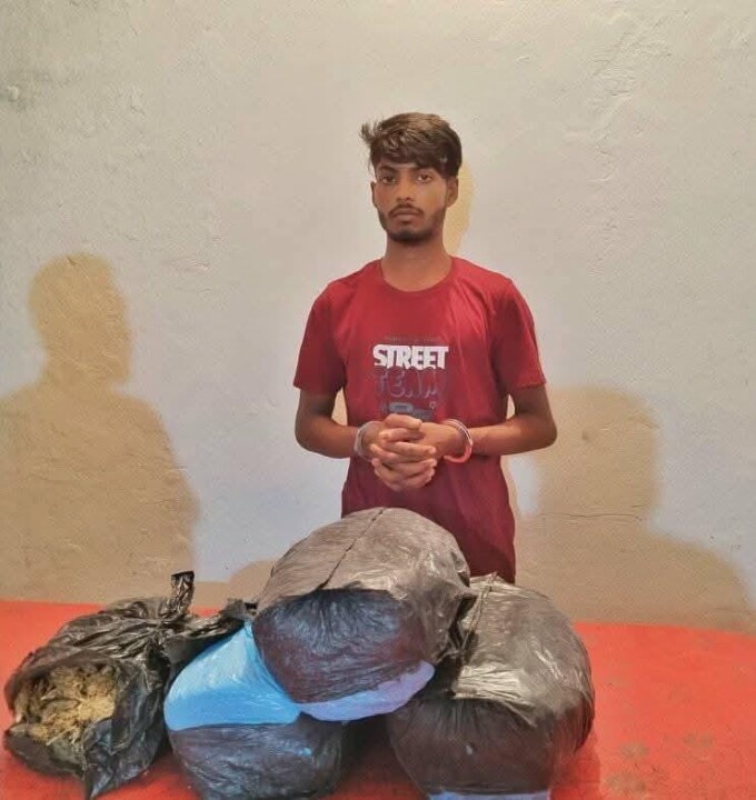 আবুল কালাম আজাদ ময়মনসিংহ জেলা প্রতিনিধি…ময়মনসিংহে মাদকদ্রব্য নিয়ন্ত্রণ অধিদপ্তরের অভিযানে ৮ কেজি গাঁজা উদ্ধার করা হয়েছে। এ সময় এক যুবককে আটক করা হয়। সোমবার (১৬ জুন ২০২৫) দুপুরে গৌরীপুর থানার রামগোপালপুর এলাকায় এ অভিযান চালানো হয়। অভিযানটি পরিচালনা করেন মাদকদ্রব্য নিয়ন্ত্রণ অধিদপ্তরের বিভাগীয় গোয়েন্দা কার্যালয়, ময়মনসিংহ এর সহকারী পরিচালক মো. কাওসারুল হাসান রনি। গোপন সংবাদের ভিত্তিতে পরিচালিত অভিযানে ৮ কেজি গাঁজা ও একটি বাটন মোবাইল ফোনসহ মো. শারিফ মিয়া (২২) নামে এক মাদককারবারিকে আটক করা হয়। আটককৃত শারিফ মিয়া ব্রাহ্মণবাড়িয়া জেলার বিজয়পুর থানার দুলালপুর পূর্বপাড়া এলাকার বাসিন্দা। তার পিতা মো. কামাল মিয়া এবং মাতা মৃত মানসুরা আক্তার। পরে অভিযুক্তের বিরুদ্ধে গৌরীপুর থানায় পরিদর্শক খন্দকার ইকবাল হোসেন বাদী হয়ে মাদকদ্রব্য নিয়ন্ত্রণ আইনে একটি নিয়মিত মামলা দায়ের করেন। মাদকদ্রব্য নিয়ন্ত্রণ অধিদপ্তরের সহকারী পরিচালক কাওসারুল হাসান রনি জানান, মাদকের বিরুদ্ধে তাদের নিয়মিত অভিযান অব্যাহত রয়েছে। সমাজ থেকে মাদক নির্মূল করতেই এ ধরনের অভিযান আরও জোরদার করা হবে
