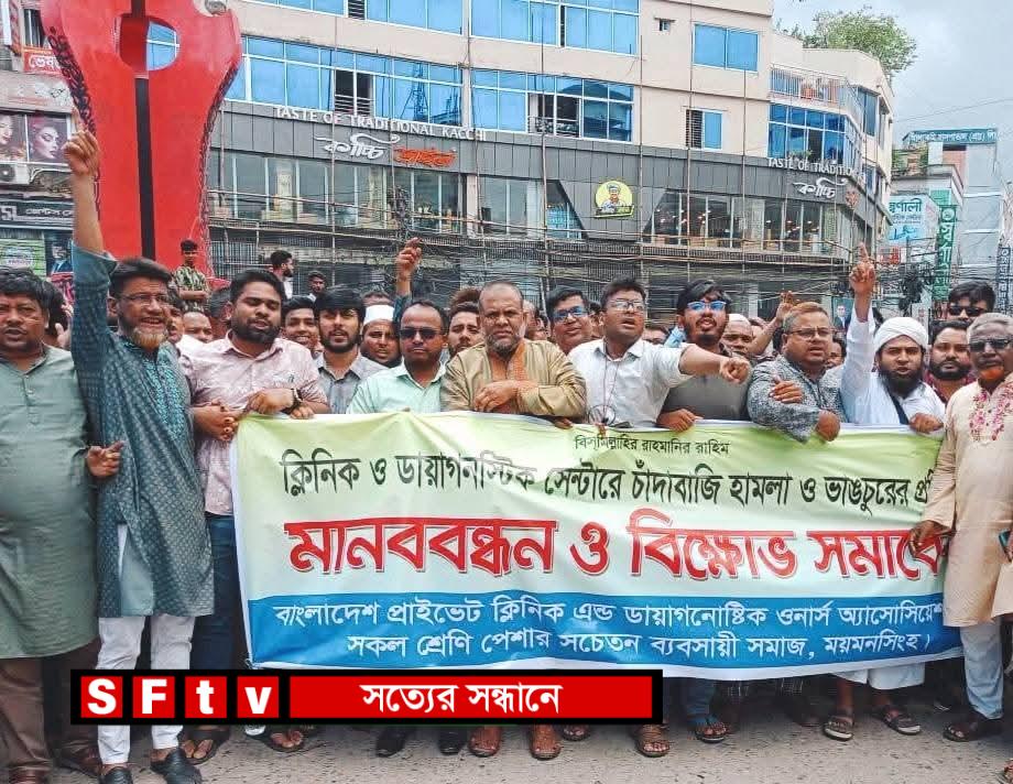 চাঁদাবাজি-সন্ত্রাসের বিরুদ্ধে ময়মনসিংহে ক্লিনিক মালিকদের বিক্ষোভ, কড়া বার্তা দিলেন ওসি
