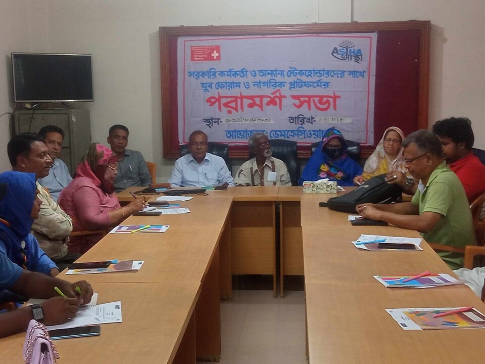মাহিদুল ইসলাম ফরহাদ চাঁপাইনবাবগঞ্জ জেলা প্রতিনিধি .. আজ ১৮জুন বুধবার সকাল ১১টায় চাঁপাইনবাবগঞ্জ জেলা প্রেসক্লাবের হলরুমে সরকারি কর্মকর্তাদের নিয়ে ও আস্থা প্রকল্পের সহযোগিতায় এ সভা অনুষ্ঠিত হয়। আস্থা নাগরিক প্লাটফর্মের জেলা সভাপতি অবসরপ্রাপ্ত প্রফেসর মোঃ শাহ আলম এর সভাপতিত্বে বক্তব্য রাখেন, জেলা নির্বাচন অধিদপ্তর রেজাউল করিম, উপ পরিচালক আব্দুল মান্নান যুব উন্নয়ন অধিদপ্তর, জেলা তথ্য অফিসার রুপ কুমার বর্মন , জেলা সমাজসেবা অধিদপ্তর উম্মে কুলসুম, উপ পরিচালক মহিলা বিষয়ক অধিদপ্তর, মোছা সাহিদা আক্তার,অতিরিক্ত জেলা নির্বাচন অধিদপ্তর শহিদুল প্রামাণিক, উপজেলা নির্বাচন অধিদপ্তর, আসাদুর রহমান। উপস্থিত ছিলেন নাগরিক প্লাটফর্মের সদস্য ও সাংবাদিক মোঃ জোনাব আলী, ডাবলুকুমার ঘোষ চাঁপাইনবাবগঞ্জ জেলা শিশু বিষয়ক কর্মকর্তা সফিকুল ইসলাস, চেম্বারের পরিচালক মোঃ শহিদুল ইসলাম, সদস্য আব্দুস সালাম, চাঁপাই প্রেসক্লাবের সভাপতি ও চাঁপাই এক্সপ্রেস নিউজের সম্পাদক আখতারুজ্জামান , সাধারণ সম্পাদক জমশেদ আলী, আস্থা প্রকল্পের জেলা সমন্বয়কারী রেজাউল করিম। বক্তব্যতে বলেন, আস্থা প্রকল্প যুবদের নিয়ে যে সব কর্মপরিকল্পনা নিয়েছে তা বাস্তবায়নে সর্বাক্ত সহযোগিতা করার আশ্বাস দেন বক্তরানাগরিক প্লাটফর্মের বিশিষ্টজনরা বলেন, এই যুব ফোরাম গুলোর দিকনির্দেশনা ও সহযোগিতার মেলবন্ধন তৈরীর মাধ্যমে যুব নেতৃত্বর বিকাশ, সাম্প্রদায়িক সম্প্রীতি রক্ষা ও সন্ত্রাসমুক্ত সমাজ গঠনে ভূমিকা রাখবে।অন্যদের মধ্যে আরো উপস্থিত ছিলেন,, জেলার পেশাজীবী প্রতিনিধি, মানবাধিকার কর্মী, আইনজীবী, শিক্ষকবৃন্দসহ যুব ফোরামের সদস্যরা উপস্থিত ছিলেন।