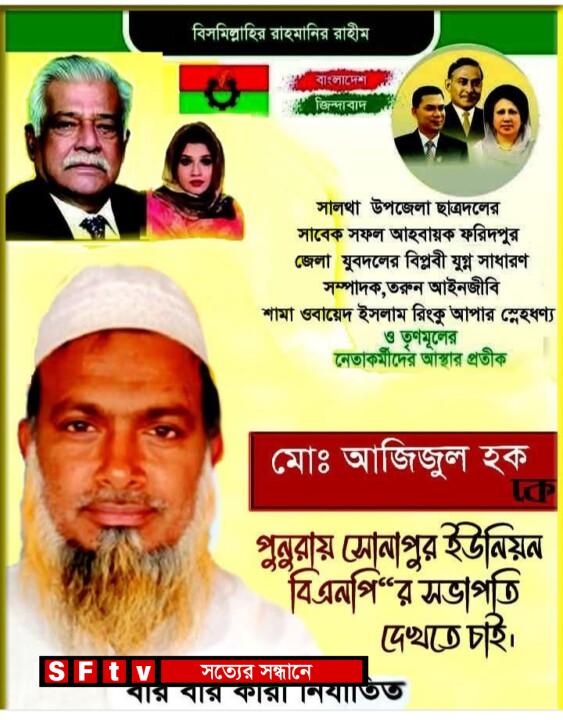 মোঃ ইলিয়াছ খান ফরিদপুর প্রতিনিধি: ফরিদপুরের সালথা থানার সোনাপুর ইউনিয়নের বর্তমান বিএনপির সভাপতি কে পুনরায় আবার সভাপতি হিসেবে দেখতে চায় সোনাপুর ইউনিয়নবাসী, তার কারণ মাওলানা আজিজুল হক একজন ভালো মনের মানুষ এবং সৎ এবং যোগ্য ব্যক্তিত্ব যিনি গত স্বৈরাচারী খুনি শেখ হাসিনার ১৭ বছরের মধ্যে ৫০ থেকে ৬০ বার মিথ্যা মামলায় জেল খেটেছে, এবং বিভিন্ন প্রকার মিথ্যা মামলার হয়রানির শিকার হয়েছে। তবুও তিনি তার দল বিএনপি’র হাত ছাড়েননি বিএনপির একজন প্রকৃত সৈনিক হোলেন বর্তমান সভাপতি মাওলানা মোঃ আজিজুল হক যার কোন তুলনায় হয় না, তার তূলনা অন্য কারো সাথে হবে না।সে সবসময় সাধারণ মানুষের পাশে থেকে সেবা করে যাচ্ছেন, এবং স্বৈরাচারী খুনি শেখ হাসিনার আমলে তার জীবনটা ছিলেন একদম কষ্ট এবং দুঃখে ভরা। এমনও দিন গেয়েছে যে সে এক সপ্তাহের মধ্যে একদিনও ভাত খেতে পারেন নি তবুও দলের প্রয়োজনে বারবার জেল খেটেছে এই কারণে সোনাপুর ইউনিয়নবাসী পুনরায় আবার তাকে সভাপতি হিসেবে দেখতে চায়, এ বিষয়ে মাওলানা মোঃ আজিজুল হক বলেন যে জুলুম অত্যাচারের ও নির্যাতনের শিকার হয়েছি আমি।তার কোন কাউকে আমি সেটা হয়েছে বলে বোঝাতে পারবো না এবং ভাষায় প্রকাশ করতে পারবো না কারণ একদিকে আমি মাদ্রাসার শিক্ষক ছিলাম ছাত্রদেরকে লেখাপড়া শিক্ষা দিয়েছি অন্যদিকে রাত দিন বিভিন্ন জঙ্গল বাঁশঝাড়ের মধ্য রাত কাটিয়েছি এমনও সময় গিয়েছে যে আমি সারাটা বছর পাট ক্ষেতের মধ্য দিয়ে ঘুমিয়ে রাত কাটিয়েছে এক কথায় ১৭ বছর স্বৈরাচারী শেখ হাসিনার জুলুম অত্যাচারের হাত থেকে আমি কোনোভাবেই, কোন অবস্থাতেই রেহাই পায়নি তাই আশা করি আমাকে সকলে সমর্থন করে পূর্নরার আবার সভাপতি করবেন বলে আমি আশা রাখি, তিনি তার প্রাণপ্রিয় সোনাপুর ইউনিয়নবাসীর কাছে দোয়া ও সমর্থন প্রত্যাশা করেছেন।সর্বশেষ তিনি সকলকে আন্তরিক শুভেচ্ছা ও অভিনন্দন জানিয়েছেন।