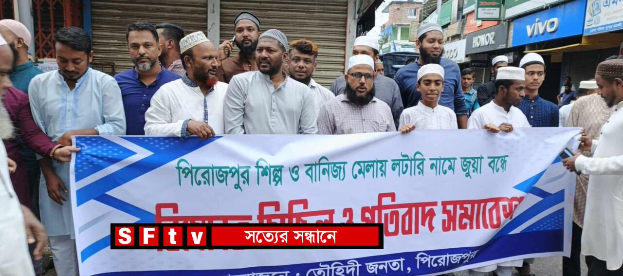 পিরোজপুর বাণিজ্য মেলায় লটারির নামে জুয়া বন্ধের দাবিতে বিক্ষোভ মিছিল ও সমাবেশ