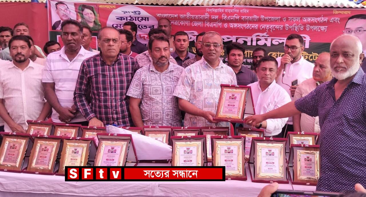 ওমর ফারুক আহম্মদ, বারহাট্টা(নেত্রকোনা)প্রতিনিধিঃ নেত্রকোনার বারহাট্টায় জেলা ও উপজেলা বিএনপির অঙ্গসংগঠনের নেতাকর্মীদের ঈদ পুণর্মিলনী অনুষ্ঠিত হয়েছে।রাষ্ট্র কাঠামোর ৩১ দফার প্রচার উপলক্ষে শনিবার বিকাল ৩ টায় ডাঃ দেলোয়ার হোসেন টিটোর গ্রামের বাড়ি উপজেলার বাউসি ইউনিয়নের দশধার গ্রামে এই পুণর্মিলনীতে প্রায় ২ হাজার মানুষ মিলন মেলা হয়। ডক্টরস এসোসিয়েশন অব বাংলাদেশ ড্যাব এর বিএমইউ শাখার সহ সভাপতি ডাঃ দেলোয়ার হোসেন টিটো নেত্রকোনা জেলা বিএনপির সাবেক সহ সভাপতি ও বর্তমান সদস্য।দীর্ঘ ১৭ বছর পর এমন একটি পরিবেশে মিলিত হতে পেরে খুশি জেলা ও উপজেলা বিএনপির অঙ্গসংগঠনের নেতাকর্মীরা।এসময় বারহাট্টা উপজেলার সকল ইউনিয়ন ও ওয়ার্ড বিএনপির সভাপতি ও সাধারণ সম্পাদক সহ জেলা বিএনপির নেতা কর্মীদের সম্মাননা ক্রেস্ট দেওয়া হয়।