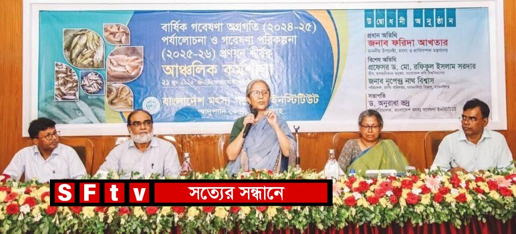 শনিবার (২১ জুন ২০২৫) সকালে ময়মনসিংহে বাংলাদেশ মৎস্য গবেষণা ইনস্টিটিউট (বিএফআরআই) আয়োজিত “বার্ষিক গবেষণা অগ্রগতি (২০২৪-২৫) পর্যালোচনা ও গবেষণা পরিকল্পনা (২০২৫-২৬)” শীর্ষক আঞ্চলিক কর্মশালার উদ্বোধনী অনুষ্ঠানে প্রধান অতিথির বক্তব্যে তিনি এসব কথা বলেন।