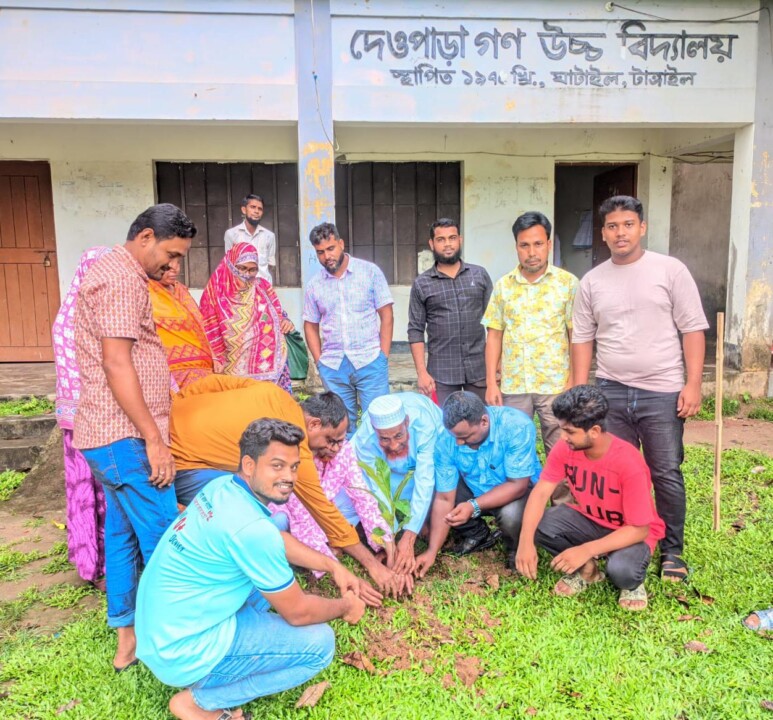 শুভ্র মজুমদার, কালিহাতী ( টাঙ্গাইল) প্রতিনিধি: সবুজায়ন সমাজ কল্যাণ সংস্থা, টাঙ্গাইলের কালিহাতী-এর সহযোগিতায় মানব কল্যাণ ব্লাড ফাউন্ডেশন কর্তৃক ঘাটাইল উপজেলার দেওপাড়ায় বাস্তবায়ন করা হলো বৃক্ষরোপণ কর্মসূচি ২০২৫ – এই উদ্যোগের মাধ্যমে পরিবেশ রক্ষায় নতুন উদ্দীপনা সৃষ্টি হয়েছে। ২৩ জুন (সোমবার) সকালে বৃক্ষরোপণ কর্মসূচিতে উপস্থিত ছিলেন, দেওপাড়া গণ উচ্চ বিদ্যালয়ের প্রধান শিক্ষক মোঃ সেলিম মিয়া, সহকারী প্রধান শিক্ষক মোঃ শাহজাহান বিএসসি এবং বিদ্যালয়ের অন্যান্য সহকারী শিক্ষক-শিক্ষিকাবৃন্দ। আরও উপস্থিত ছিলেন মোঃ দেলোয়ার হোসেন মাস্টার (উপদেষ্টা, মানব কল্যাণ ব্লাড ফাউন্ডেশন), অপ্টোমেট্রিস্ট মোঃ সাইদুর রহমান সাদ্দাম সাধারণ সম্পাদক, সবুজায়ন সমাজ কল্যাণ সংস্থা, কালিহাতী ও উপদেষ্টা, মানব কল্যাণ ব্লাড ফাউন্ডেশন), মোঃ শামিম আল-মামুন (এডমিন, মানব কল্যাণ ব্লাড ফাউন্ডেশন – HWBF), দেওপাড়া শাখার সকল কার্যকরী সদস্যবৃন্দ।এই কর্মসূচির অংশ হিসেবে চারাগাছ রোপণ করা হয় দেওপাড়া গণ উচ্চ বিদ্যালয় মাঠ, দেওপাড়া বাহারুন্নেছা দাখিল মাদ্রাসা, দেওপাড়া কেন্দ্রীয় ঈদগাহ মাঠ, দেওপাড়া ইউনিয়ন পরিষদ কমপ্লেক্স এবং খাকুরিয়া ব্রীজের রাস্তার পাশে। রোপণকৃত গাছের মধ্যে ছিল কাঠাবাদাম, কাঠাল, জলপাই, কৃষ্ণচূড়া, জারুল, মহুয়া, নিম, পেয়ারা সহ নানা প্রজাতির বনজ ও ফলজ গাছ। পরিবেশ রক্ষায় ও সবুজ বাংলাদেশের স্বপ্ন বাস্তবায়নে এই ধরনের সামাজিক উদ্যোগ আগামী প্রজন্মের জন্য অনুকরণীয় হয়ে থাকবে।