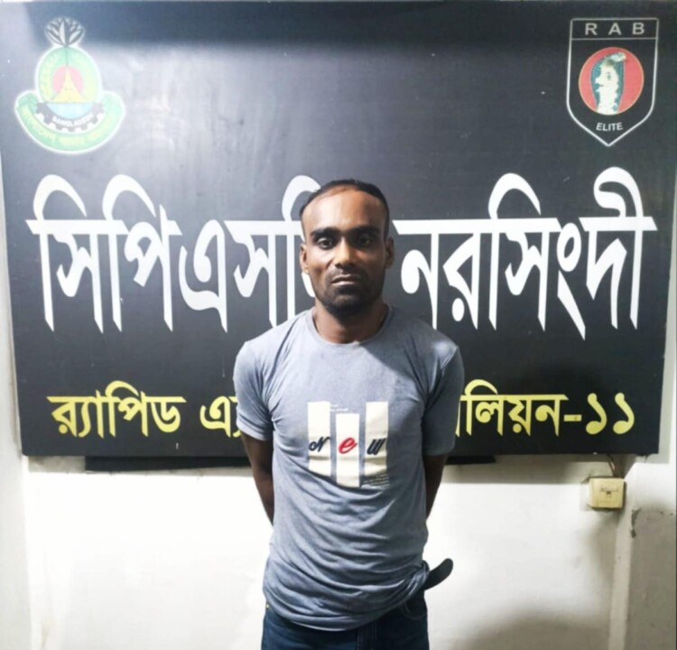 আবুনাঈম রিপন: স্টাফ রিপোর্টারনরসিংদীর শিবপুর উপজেলায় র্যাব-১১ এর বিশেষ অভিযানে গ্রেফতার হয়েছেন, একাধিক ডাকাতি ও হত্যা মামলার আসামি মোঃ সবুজ ওরফে সেলিম (৩৫) গোপন সংবাদের ভিত্তিতে ২৩ ইং জুন সোমবার রাত ১২টা ৩০ মিনিটে শিবপুর উপজেলার কামড়াবো এলাকায় অভিযান চালিয়ে তাকে আটক করা হয়।র্যাব সূত্র জানায়,গ্রেফতারকৃত মোঃ সবুজ পলাশ উপজেলার সুলতানপুর এলাকার মৃত কামাল ওরফে আলাউদ্দিনের ছেলে। তিনি রাজধানীর ভাষানটেক থানাসহ গাজীপুরের শ্রীপুর এবং নরসিংদীর পলাশ থানায় একাধিক ডাকাতি ও হত্যা মামলার পলাতক আসামি। ২৩ ইং জুন সোমবার বেলা দেড়টায় ,র্যাব-১১ এর সিপিএসসি নরসিংদী ক্যাম্পের কমান্ডার সিনিয়র এএসপি জুয়েল রানা পিপিএম (সেবা) জানান,আসামি মোঃ সবুজ ওরফে সেলিম দীর্ঘদিন ধরে ডাকাতি ও সংঘবদ্ধ অপরাধচক্রের সঙ্গে জড়িত ছিল। তার বিরুদ্ধে ঢাকা ও গাজীপুর সহ বিভিন্ন স্থানে একাধিক মামলা রয়েছে। গোপন তথ্যের ভিত্তিতে আমরা সফলভাবে তাকে গ্রেফতার করতে পেরেছি।গ্রেফতারের পর আসামিকে প্রাথমিক জিজ্ঞাসাবাদ শেষে পরবর্তী আইনগত ব্যবস্থা গ্রহণের জন্য পলাশ থানা পুলিশের কাছে হস্তান্তর করা হয়েছে।