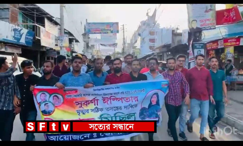 ছাত্রদল নেত্রী সুকর্ণা আক্তার ইপ্সিতার অপমৃত্যুর প্রকৃত রহস্য উদঘাটন এবং দায়ীদের বিচারের দাবিতে ভোলা পৌর ছাত্রদল এক বিক্ষোভ মিছিল ও সমাবেশ করেছে। মঙ্গলবার বিকেল পাঁচটায় পৌর ছাত্রদল সদস্য সচিব জাকারিয়া বেলালের নেতৃত্বে আয়োজিত এই কর্মসূচি ভোলা হোমিও কলেজ রোড থেকে শুরু হয়ে শহরের বিভিন্ন গুরুত্বপূর্ণ সড়ক প্রদক্ষিণ করে ভোলা প্রেসক্লাবের সামনে গিয়ে শেষ হয়।