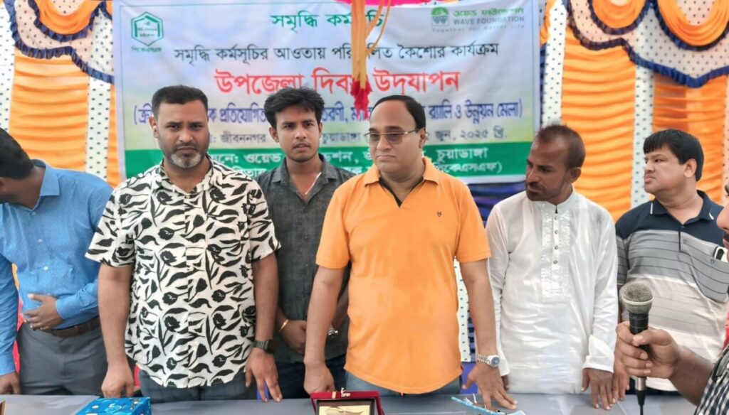 মোঃ মুনাইম হোসেন, (জীবননগর) প্রতিনিধি; চুয়াডাঙ্গার জীবননগর উপজেলায় ওয়েভ ফাউন্ডেশনের উদ্যোগে এবং সমৃদ্ধি কর্মসূচির আওতায় পরিচালিত কৈশোর কার্যক্রম উপলক্ষে উপজেলা দিবস পালন করা হয়েছে। এ উপলক্ষে ২৫ (জুন) জীবননগর স্টেডিয়াম মাঠে আয়োজন করা হয় বর্ণাঢ্য ক্রীড়া ও সাংস্কৃতিক অনুষ্ঠান, র্যালি এবং উন্নয়ন মেলা। উক্ত আয়োজনে প্রধান ও বিশেষ অতিথি হিসেবে উপস্থিত ছিলেন: জীবননগর উপজেলা বিএনপির সংগ্রামী সভাপতি আনোয়ার হোসেন খান খোকন উপজেলা বিএনপির সিনিয়র যুগ্ম সাধারণ সম্পাদক এবং উপজেলা যুবদলের আহ্বায়ক জননেতা মো. মঈন উদ্দীন ময়েন জীবননগর পৌর বিএনপির সভাপতি শাজাহান কবীর পৌর বিএনপির সাধারণ সম্পাদক শামসুজ্জামান ডাবলু উপজেলা ছাত্রদলের আহ্বায়ক জিল্লুর রহমান এছাড়াও যুবদল, ছাত্রদলসহ বিএনপির বিভিন্ন অঙ্গ ও সহযোগী সংগঠনের নেতৃবৃন্দ, স্থানীয় গণ্যমান্য ব্যক্তিবর্গ ও তরুণ সমাজের প্রতিনিধিরা অনুষ্ঠানে অংশগ্রহণ করেন। দিনব্যাপী আয়োজনে কিশোর-কিশোরীদের অংশগ্রহণে চিত্রাঙ্কন, কবিতা আবৃত্তি, ক্রীড়া প্রতিযোগিতা ও দেশাত্মবোধক সাংস্কৃতিক পরিবেশনা অনুষ্ঠিত হয়। উন্নয়ন মেলায় বিভিন্ন স্টলে নারীদের উদ্যোক্তা কার্যক্রম, স্বাস্থ্য সচেতনতা ও শিক্ষামূলক উপস্থাপনা ছিলো চোখে পড়ার মতো। আয়োজক প্রতিষ্ঠান ওয়েভ ফাউন্ডেশন জানায়, কৈশোর কার্যক্রমের মাধ্যমে তরুণ প্রজন্মের নেতৃত্বগুণ, আত্মবিশ্বাস ও সামাজিক সচেতনতা বৃদ্ধির লক্ষ্যেই এ ধরনের আয়োজন করা হয়েছে। অতিথিরা তাদের বক্তব্যে বলেন, এই আয়োজন শুধু বিনোদন নয়, বরং একটি প্রজন্মকে সুস্থ চিন্তা ও উন্নয়নমুখী সমাজ গঠনে উৎসাহিত করার একটি প্রয়াস।
