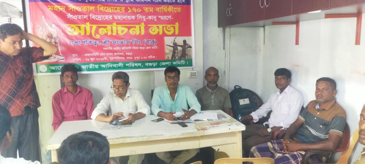 পরিষদ বগুড়া জেলা কমিটির উদ্যোগে বগুড়া প্রজা বাহিনী লেন, বাসাদ কার্যালয়ে ১৭০তম সাঁওতাল বিদ্রোহ দিবস উপলক্ষে আলোচনা সভা অনুষ্ঠিত হয়। উক্ত সভায় জাতীয় আদিবাসী পরিষদ বগুড়া জেলার সভাপতি শ্রী সন্তোষ সিং বাবু এর সভাপতিত্বে প্রধান অতিথি হিসেবে বক্তব্য রাখেন এ্যাডঃ মোঃ ছাইফুল ইসলাম (পল্টু) আহ্বায়ক বগুড়া জেলা বাসদ, অদিবাসী বিষয় আলোচনা করেন শ্রী যুগেশ চন্দ্র সিং সাবেক সভাপতি জাতীয় আদিবাসী পরিষদ বগুড়া বগুড়া জেলা কমিটি। মোঃ লিটন হক, আমরা মুক্তিযোদ্ধা সন্তান যুগ্ম সম্পাদক বগুড়া জেলা