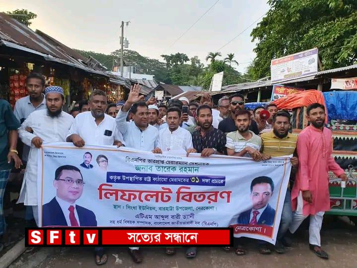 বারহাট্টায় লিফলেট বিতরণ ও গণসংযোগ অনুষ্ঠিত হয়েছে