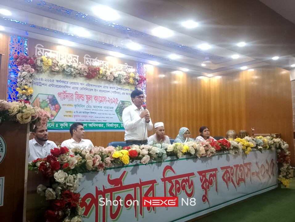 প্রোগ্রাম অন এগ্রিকালচারাল এন্ড রুরাল ট্রান্সফরমেশন ফর নিউট্রিশন এন্টারপ্রেরনশিপ এন্ড রেসিলিয়েন্স ইন বাংলাদেশ (পার্টনার) প্রকল্প এর আওতায় পার্টনার ফিল্ড স্কুল কংগ্রেস ২০২৫ অনুষ্ঠিত হয়েছে।‎
