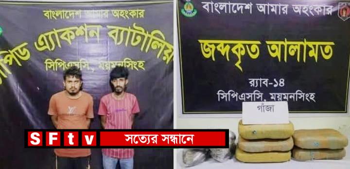 অ্যাকশন ব্যাটালিয়ন (র‍্যাব)-১৪ এর অভিযানে ১৪ কেজি ২৫০ গ্রাম গাঁজাসহ দুই মাদক ব্যবসায়ী গ্রেপ্তার
