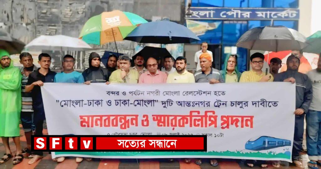 বক্তারা বলেন, মোংলা কেবল একটি সমুদ্রবন্দর নয়; এটি দেশের দ্বিতীয় বৃহত্তম বন্দর হিসেবে আমদানি-রপ্তানি বাণিজ্যের গুরুত্বপূর্ণ কেন্দ্র। পাশাপাশি এখানে ইপিজেড, বিশেষ অর্থনৈতিক অঞ্চল, শিল্পপার্ক এবং পর্যটন কেন্দ্র গড়ে উঠছে। এই বিশাল সম্ভাবনাকে কাজে লাগাতে একটি আধুনিক ও সরাসরি রেল সংযোগের বিকল্প নেই। বর্তমানে মোংলা থেকে ঢাকার সঙ্গে সরাসরি কোনো আন্তঃনগর রেল চলাচল না থাকায় এখানকার ব্যবসা, বাণিজ্য ও সাধারণ মানুষের যাতায়াতে বড় প্রতিবন্ধকতা তৈরি হচ্ছে। এই অবস্থায় মোংলা-ঢাকা ও ঢাকা-মোংলা আন্তঃনগর ট্রেন চালু অপরিহার্য হয়ে পড়েছে