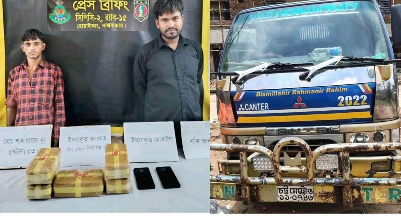 টেকনাফে র‍্যাবের চেকপোস্টে ৫০ হাজার ইয়াবাসহ উখিয়ার দুই কারবারি আটক