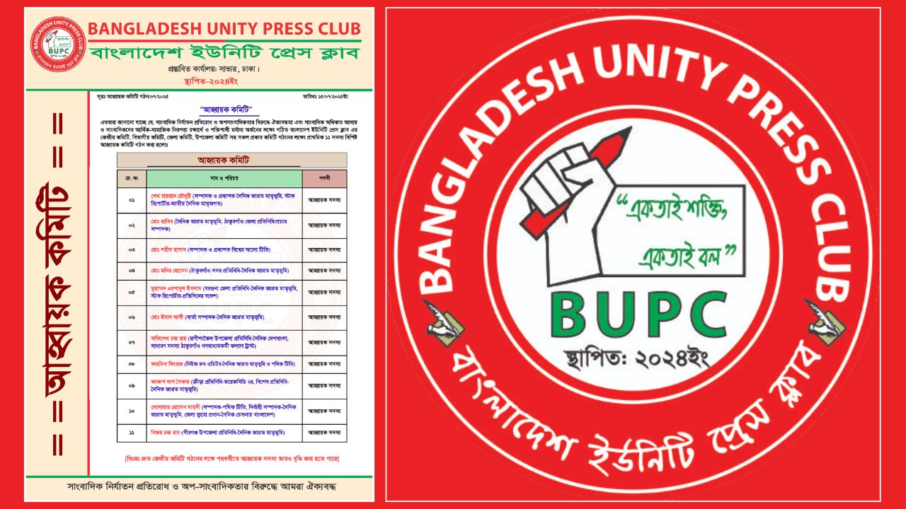 মোঃ হাবিব প্রতিনিধি :সাংবাদিকদের পেশাগত নিরাপত্তা, অধিকার আদায়, ঐক্যবদ্ধতা ও ন্যায়বিচার নিশ্চিতে একদল সচেতন ও সক্রিয় সাংবাদিক মিলে নতুন একটি সংগঠন প্রতিষ্ঠা করেছেন। সংগঠনটির নাম ‘বাংলাদেশ ইউনিটি প্রেস ক্লাব (বিইউপিসি)’।