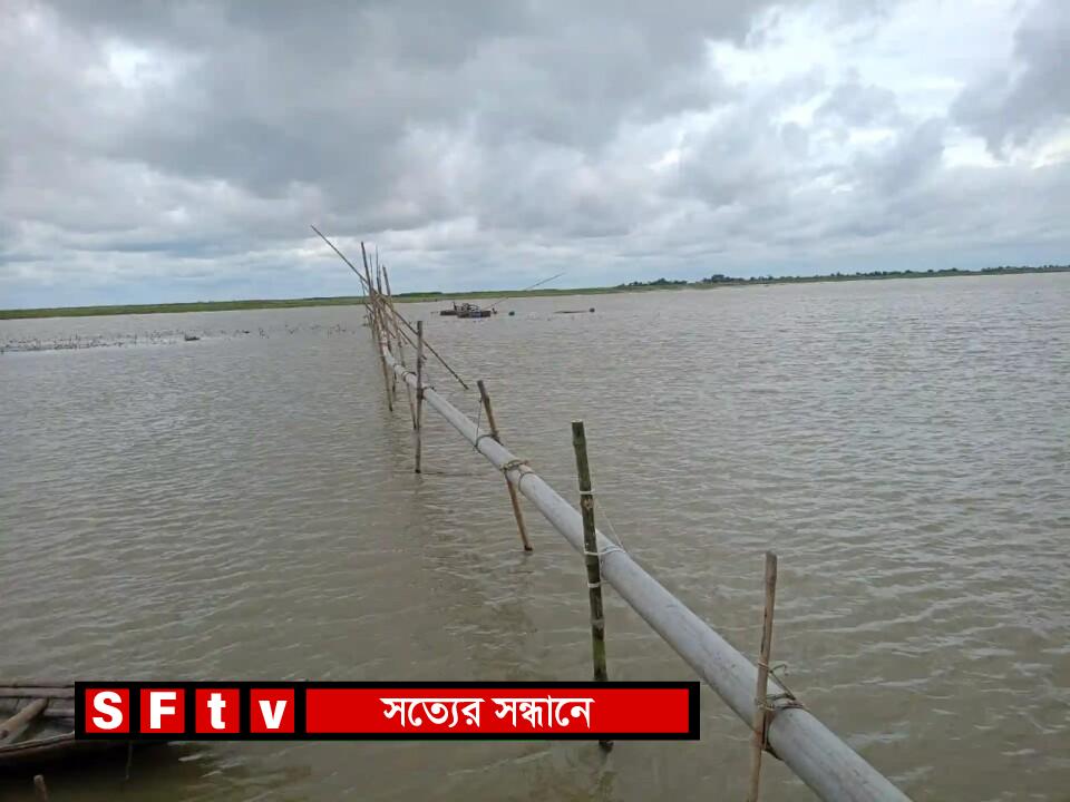 রবিবার সরেজমিনে ঘুরে দেখা যায়, নদীর তীরে ড্রেজার মেশিন দিয়ে বালু উত্তোলনের মচ্ছব চলছে। কয়েক একর জমির উপর বালুর বড় বড় স্তুপ দেখা গেছে। এসময় বালু কারা উত্তোলন করে মেশিন অপারেটর কবিরের কাছে জানতে চাইলে তারা ৮ নং ওয়াড সাংগঠনিক সম্পাদক বিএনপির নেতার কথা বলেন