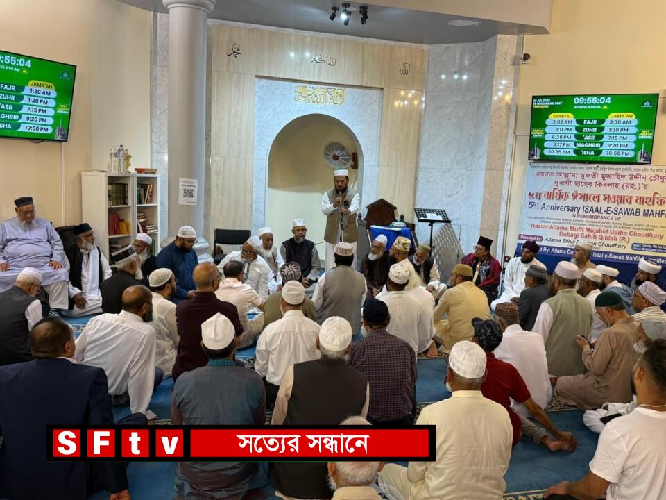 বৃটেনে বাংলাদেশী শীর্ষ ওলিয়ে কামিল, প্রখ্যাত বুযুর্গ, ইউকে ওলামা সোসাইটির প্রতিষ্ঠাতা-সভাপতি ও আনজুমানে আল-ইসলাহ ইউকের প্রতিষ্ঠাতা, লন্ডন দারুল হাদীস লাতিফিয়ার অন্যতম প্রতিষ্ঠাতা, শায়খুল হাদীস, উস্তাযুল ফুকাহা ওয়াল মুহাদ্দিসীন, রঈসুল কুররা, মুফতিয়ে আযম, হযরত আল্লামা মুফতি মুজাহিদ উদ্দীন চৌধুরী দুবাগী ছাহেব কিবলাহ (রহঃ) –এর পঞ্চম বার্ষিক ঈসালে সাওয়াব মাহফিল বৃহস্পতিবার (১০ জুলাই ২০২৫ইং), লন্ডনের ঐতিহ্যবাহী ব্রিকলেন জামে মসজিদে অনুষ্ঠিত হয়েছে।