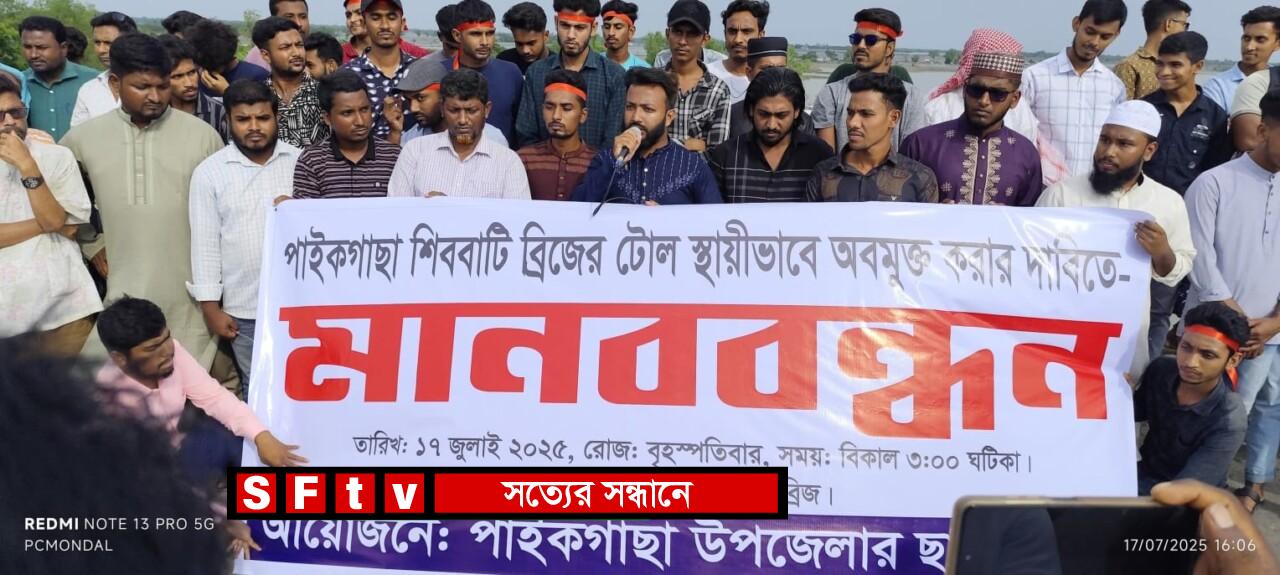মানববন্ধনে বিভিন্ন লেখা প্ল্যাকার্ড হাতে নিয়ে সারিবদ্ধভাবে শান্তিপূর্ণ ভাবে সরকারের কাছে দাবি জানানো হয় শিববাটি ব্রীজের টোল স্থায়ীভাবে অবমুক্তির দাবি। সড়ক ও জনপথ (সওজ) সূত্রে জানা যায়, ২০১০ সালে সেতু দুটি দিয়ে যানবাহন চলাচল শুরু হয়। খুলনা-এর অধীন বেতগ্রাম-তালা-পাইকগাছা-কয়রা (জেড-৭৬০৪) জেলা মহাসড়কের ৩৩তম কিলোমিটারে অবস্থিত শিবসা সেতু হতে পারাপারকারী যানবাহনের টোল আদায়ের নিমিত্তে ইজারা প্রদান করা হয়। গত বছরের ৫ আগস্ট ছাত্র-জনতার অভ্যুত্থানের পর তারা শিববাটি ব্রীজের টোল ঘর ভাংচুর ও টোল আদায় বন্ধ করে দেয়। এতে ছাত্রদের প্রতি সাধুবাদ জানিয়ে স্বস্তি প্রকাশ করেন এ জনপদের সাধারণ মানুষ। এসময় তারা স্থায়ী টোল আদায় বন্ধে সরকারের সংশ্লিষ্ট কর্তৃপক্ষের প্রতি জোর দাবি জানান। সেই থেকে বেশ কিছুদিন টোল আদায় বন্ধ থাকার পর সম্প্রতি ইজারাদারের পক্ষে ফের টোল আদায় শুরু হয়।