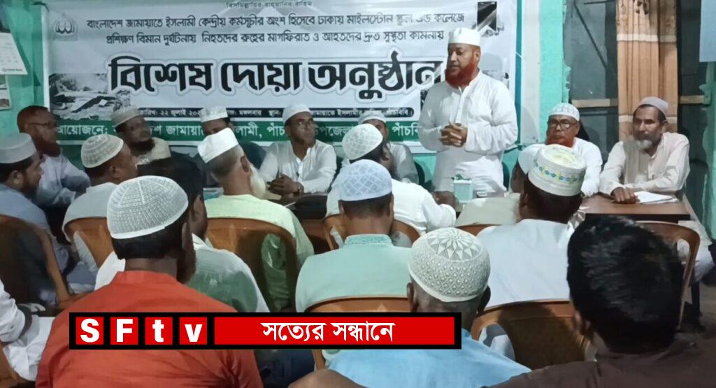 মোঃ আবু সুফিয়ান মুক্তার,জয়পুরহাট জেলা প্রতিনিধি: বাংলাদেশ জামায়াতে ইসলামী কেন্দ্র ঘোষিত কর্মসূচির অংশ হিসেবে ঢাকার দিয়াবাড়ি এলাকায় মাইলস্টোন স্কুল অ্যান্ড কলেজে সংঘটিত মর্মান্তিক বিমান দুর্ঘটনায় নিহতদের রূহের মাগফিরাত এবং আহতদের দ্রুত সুস্থতা কামনায় পাঁচবিবি উপজেলা জামায়াতে ইসলামীর উদ্যোগে এক বিশেষ দোয়া মাহফিল অনুষ্ঠিত হয়েছে।