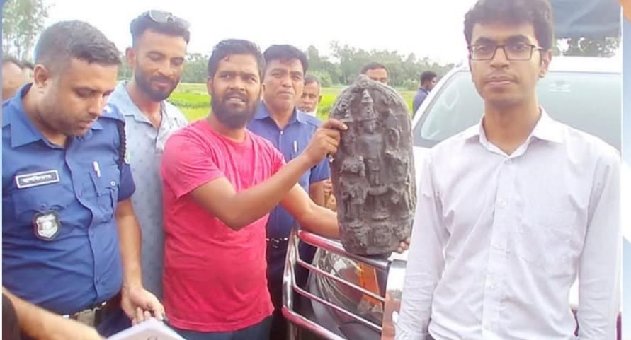 উজ্জ্বল কুমার সরকার :নওগাঁর রাণীনগরে জমিতে পাওয়ার টিলার দিয়ে হাল চাষের সময় মাটির নিচ থেকে ওঠে এলো কষ্টি পাথরের বিষ্ণ মূর্তি। উপজেলার কালীগ্রাম মুন্সিপুর পশ্চিম মাঠে গঙ্গার মারা ভিটা নামকস্থানে এই মূর্তি পাওয়া যায়।খবর পেয়ে বৃহস্পতিবার সন্ধা ৬টা নাগাদ উপজেলা সহকারী কমিশনার (ভূমি) থানাপুলিশকে সাথে নিয়ে মূর্তিটি উদ্ধার করে নিয়ে যায়। উপজেলা সহকারী কমিশনার (ভূমি) শেখ নওশাদ হাসান জানান,কালীগ্রাম ডাকাহার পাড়া গ্রামের জীবন কুমার সরকারের জমিতে একজন শ্রমীক পাওয়ার টিলার দিয়ে হাল চাষ করছিলেন। এসময় মাটির নিচ থেকে প্রায় সাড়ে ২১ইঞ্চি দৈর্ঘ,সাড়ে ৯ইঞ্চি প্রস্ত এবং প্রায় ১৪কেজি ওজনের একটি কষ্টি পাথরের মূর্তি ওঠে আসে। পরে বিষয়টি থানাপুলিশকে জানালে থানাপুলিশের সহায়তায় সন্ধা নাগাদ মূর্তিটি উদ্ধার করে নিয়ে আসা হয়েছে। এটি আইনি প্রক্রিয়া শেষে জেলা প্রসাশকের মাধ্যমে প্রতœতথ্য অধিদপ্তরে হস্তান্তর করা হবে।